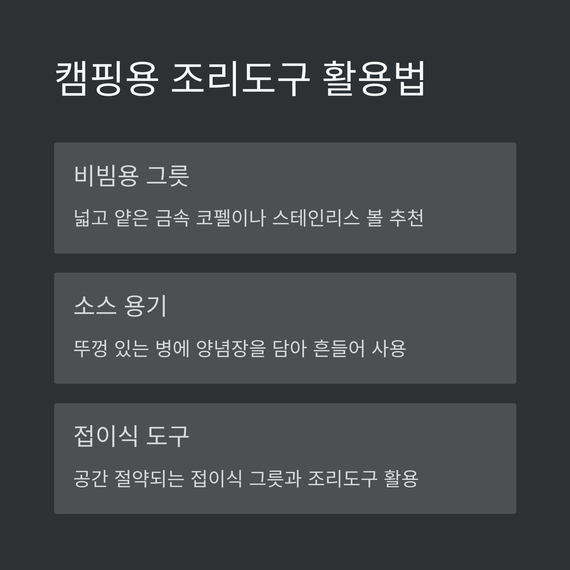 이번 글에서는 주방 도구가 제한된 캠핑 환경에서도