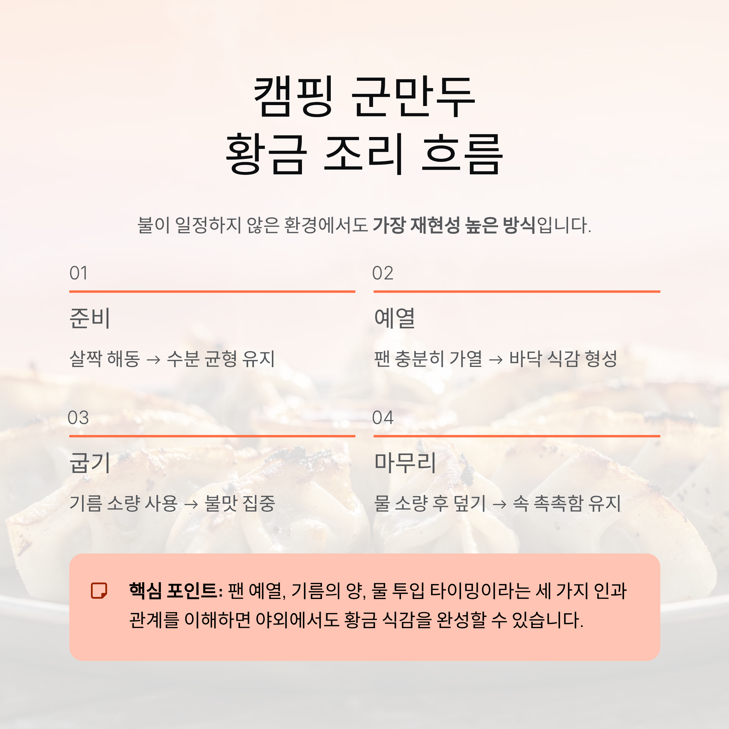 캠핑 군만두 황금 조리 흐름 정리
