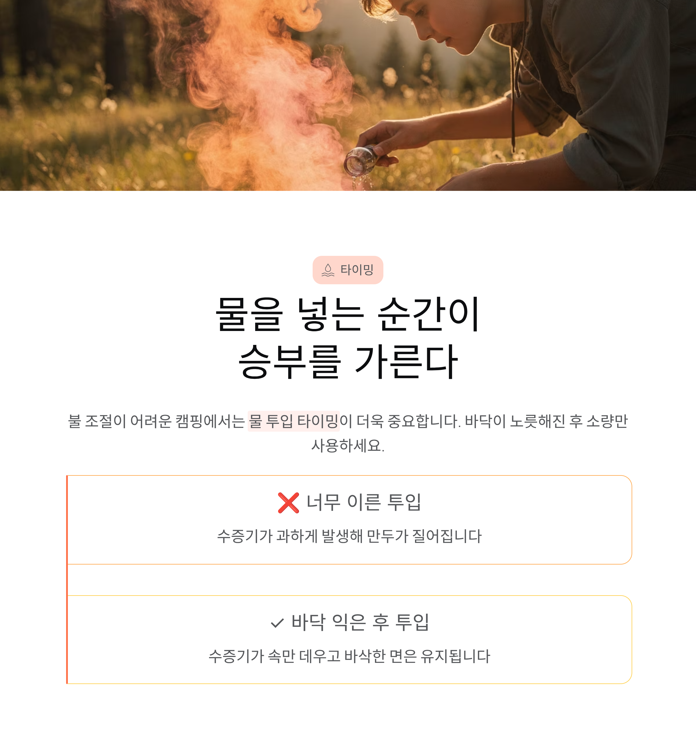 물을 넣는 타이밍이 캠핑에서는 더 중요하다