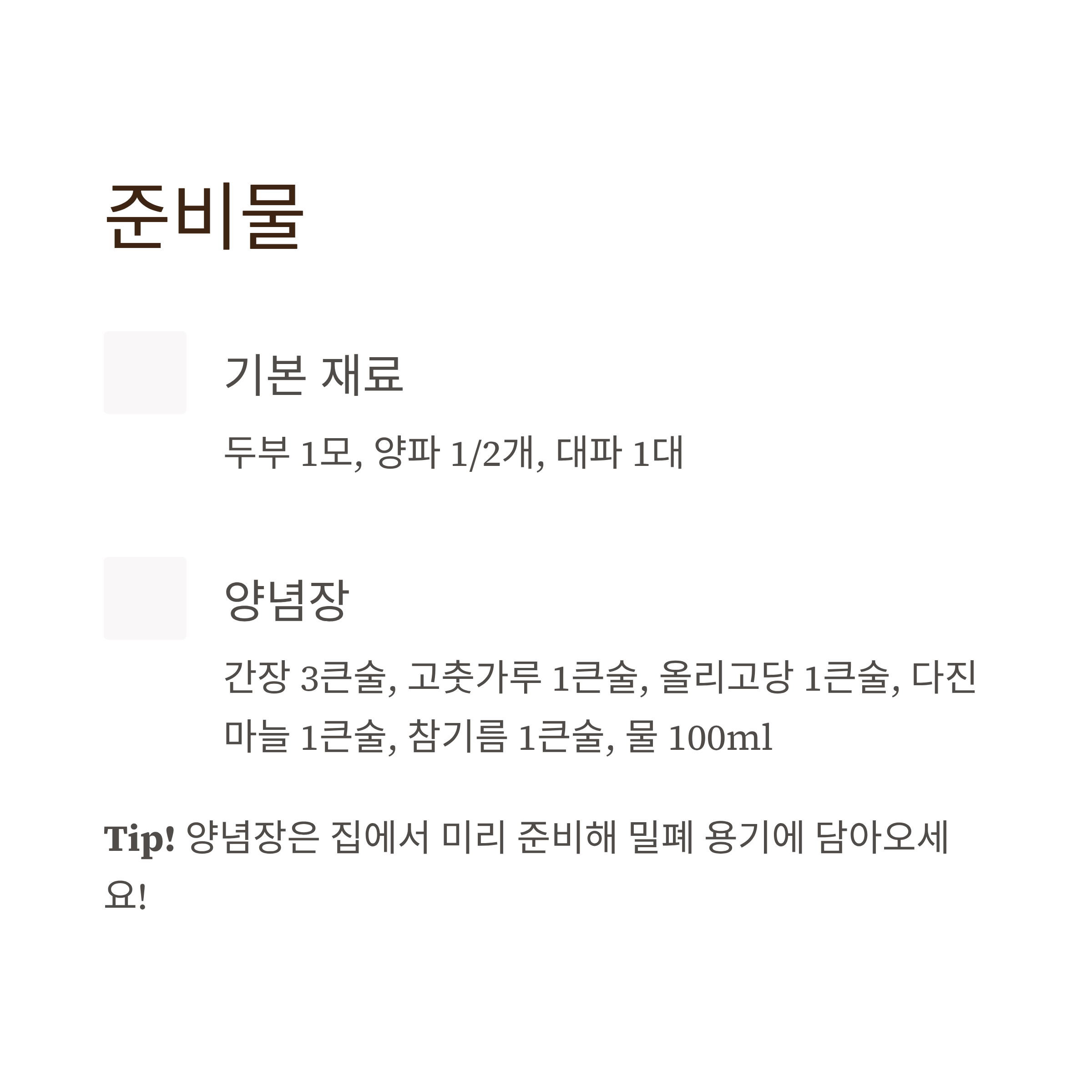 - 미리 양념장 준비: 현장에서는 두부만 썰어 넣으면 끝!