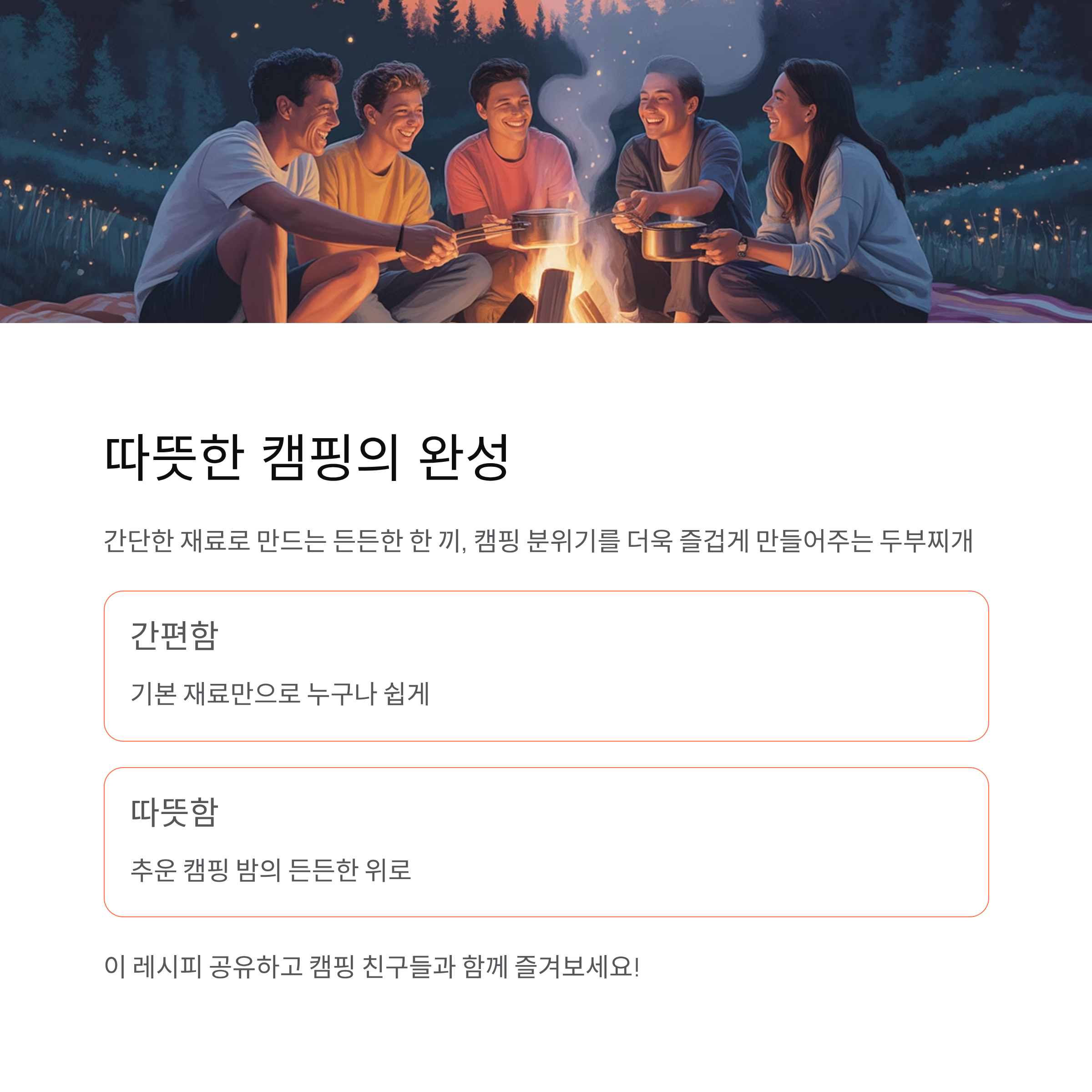 캠핑하면 바비큐나 구이 요리가 먼저 떠오르지만, 추운 날씨나 밤공기 속에서 따끈하게 끓여 먹는 찌개만큼 든든한 메뉴도 없습니다.