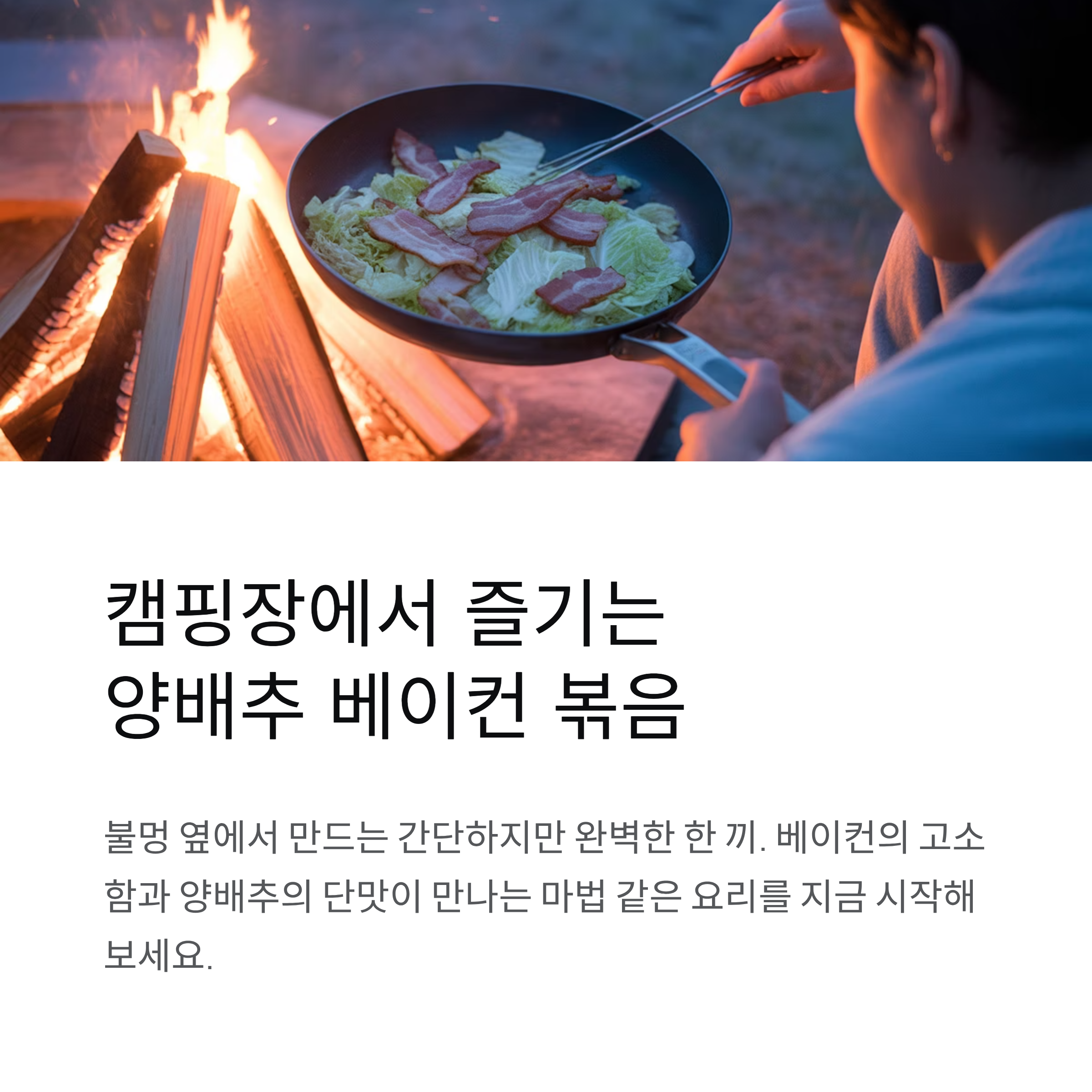 불멍 옆에서 즐기는 한 판의 마법, 양배추 베이컨 볶음