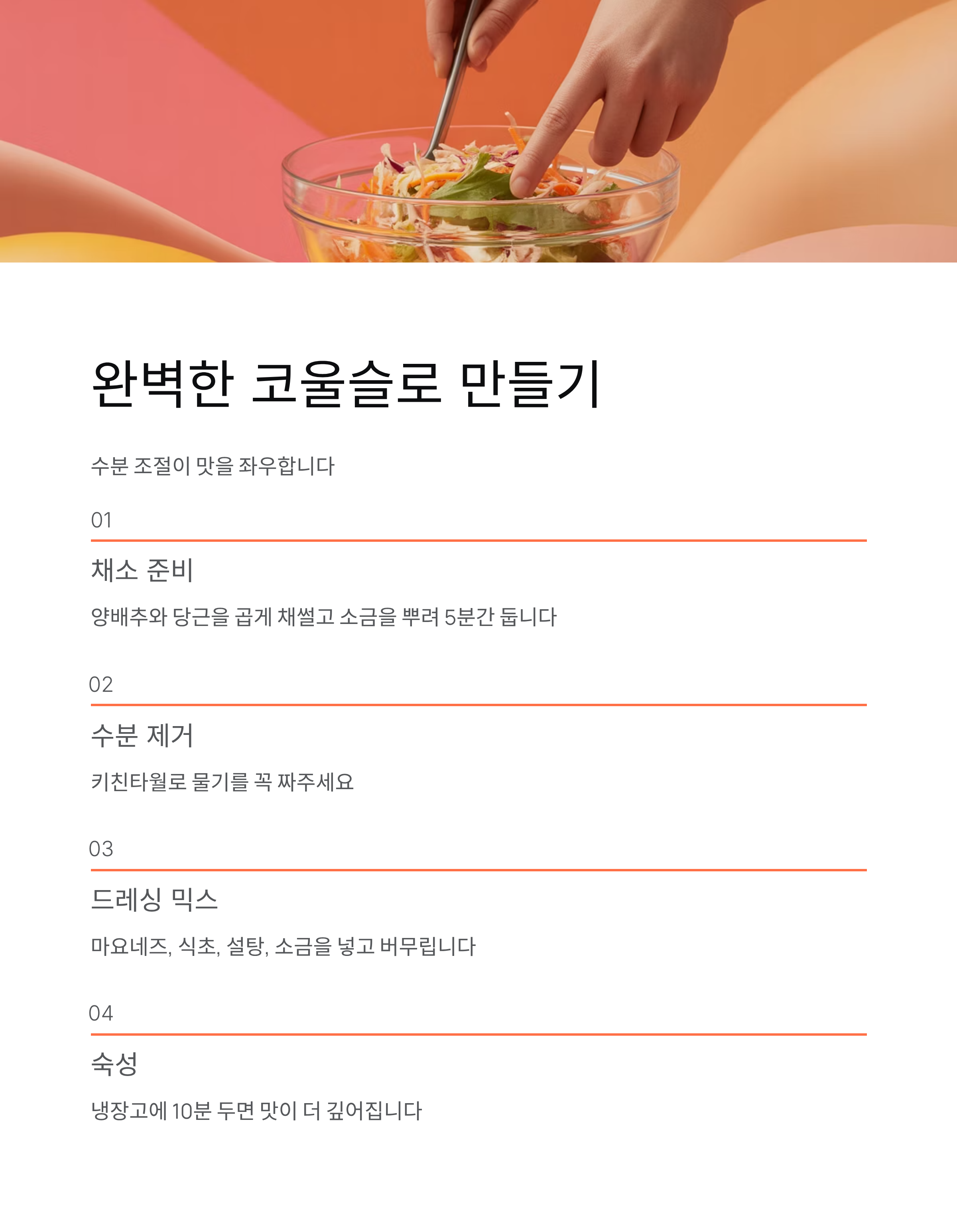 코울슬로 만들기: 수분 조절이 맛을 좌우