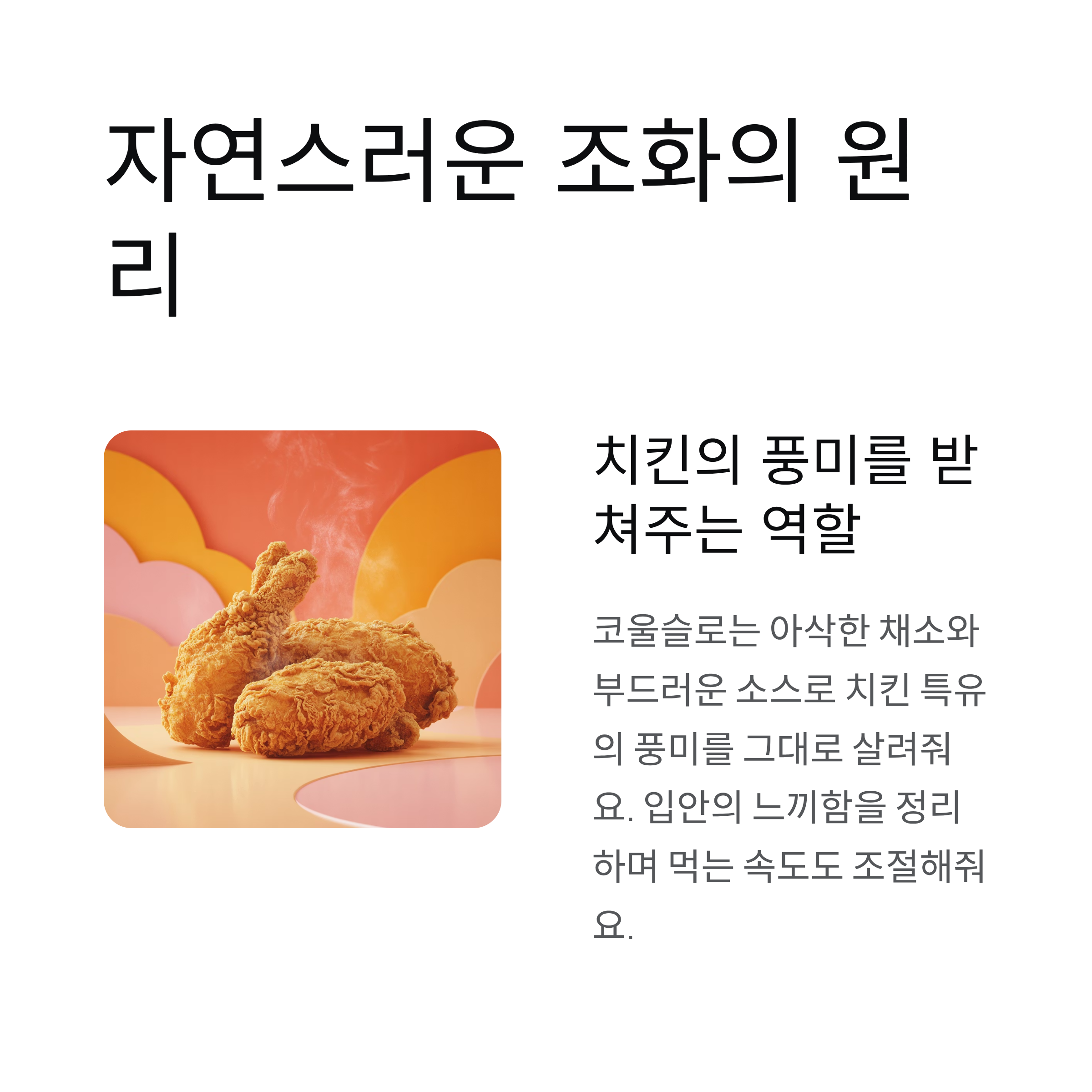 코울슬로가 치킨과 만나면 생기는 자연스러운 조화
