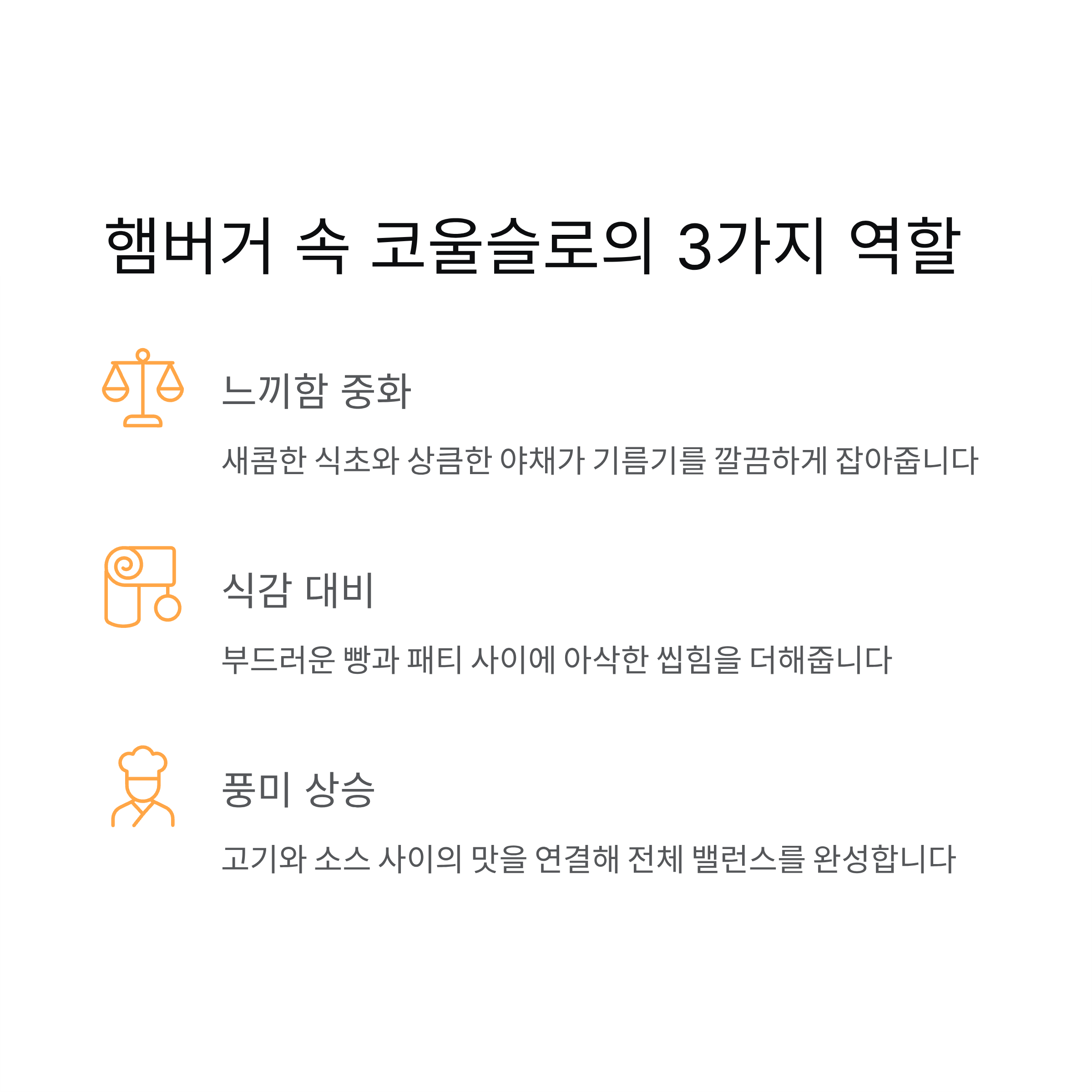 즉, 햄버거 속에서 코울슬로는 단순한 ‘야채’가 아니라