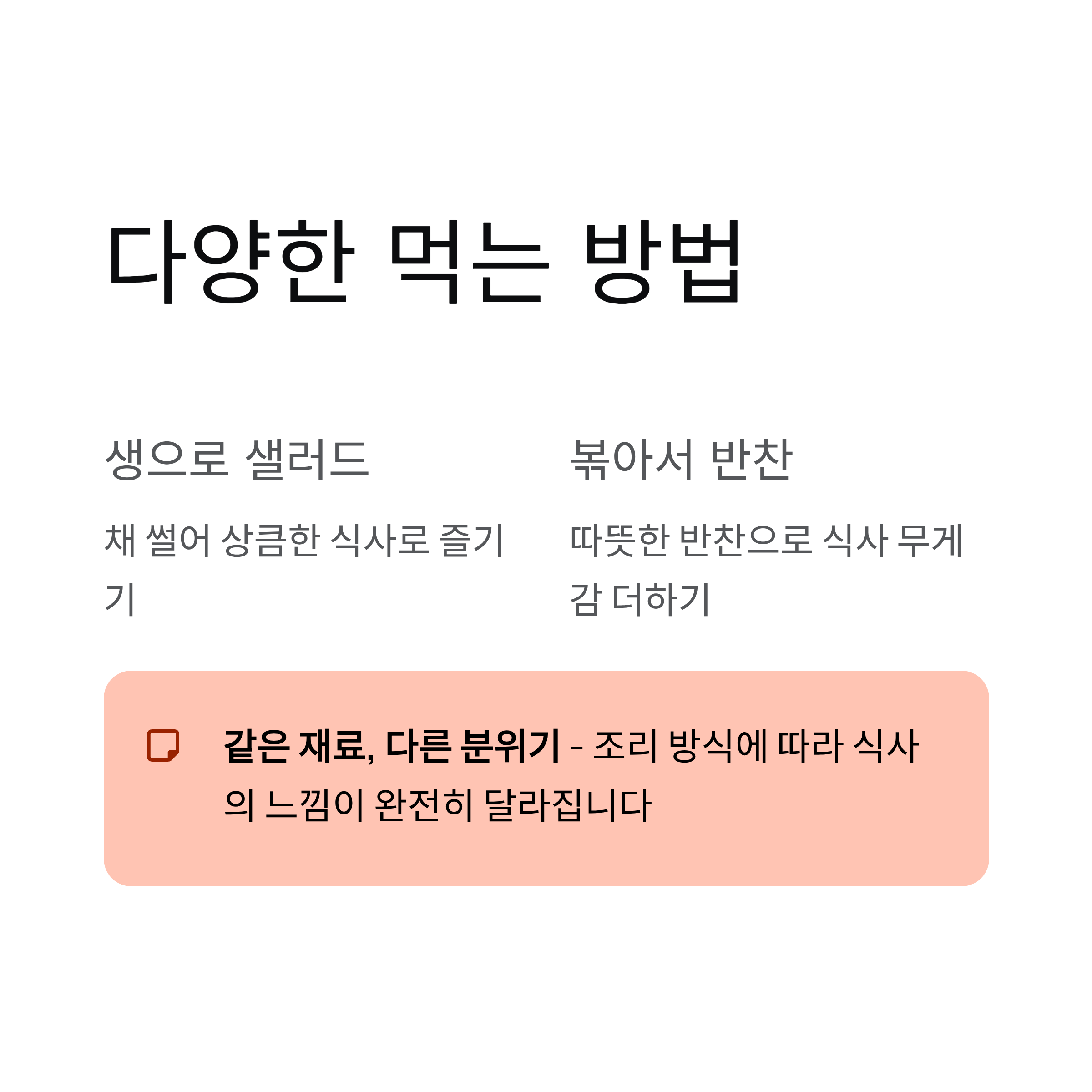 | 조직감 | 아삭함 유지 | 생식과 조리 모두 가능 |