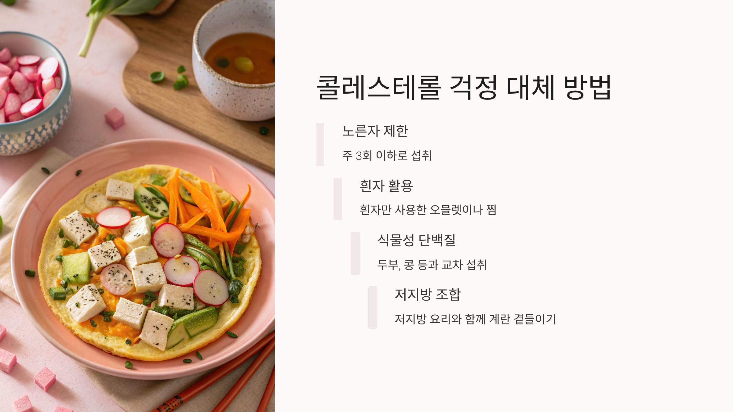 | 고콜레스테롤군 | 주 2~3회 제한적 | 노른자 제한 또는 흰자만 섭취 |