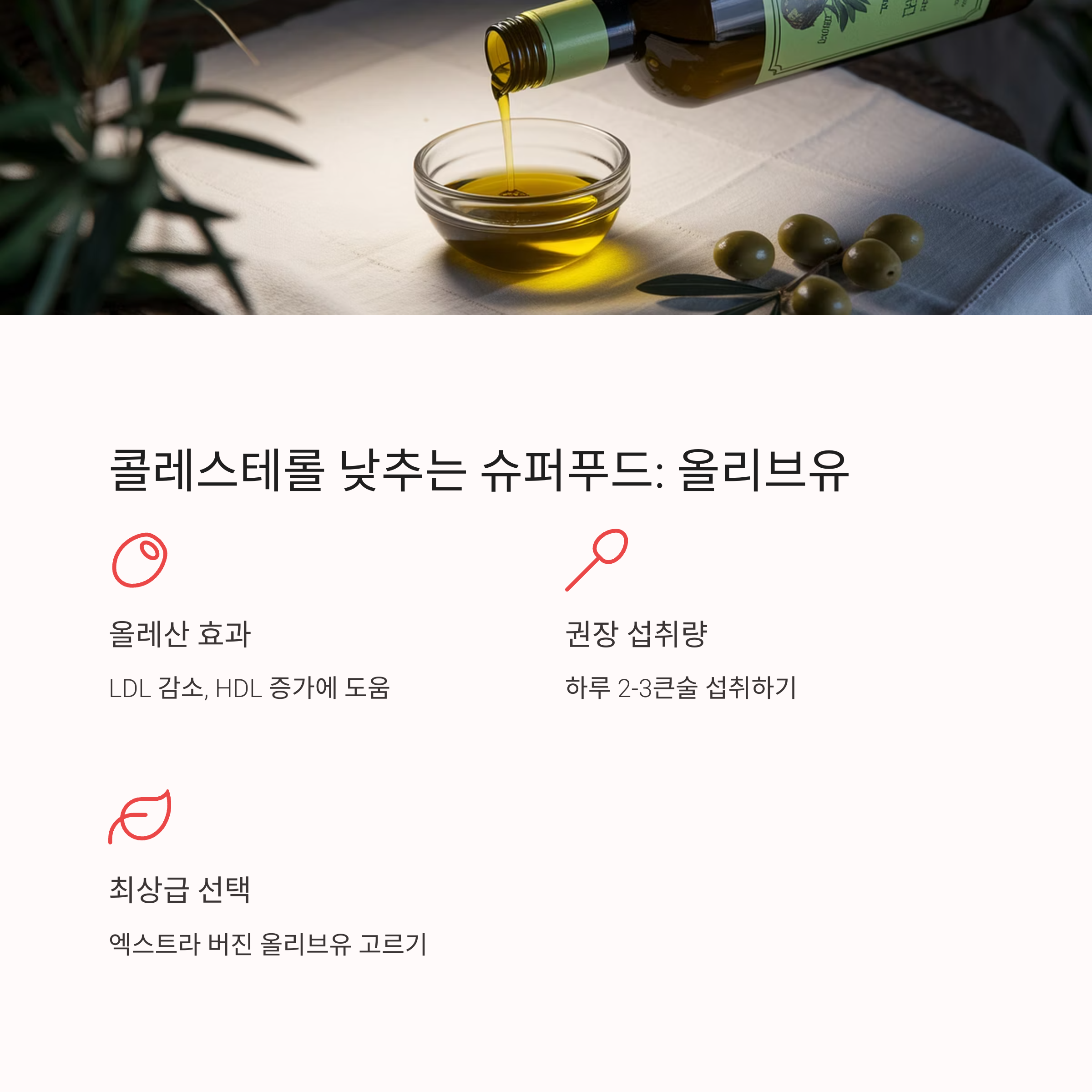 콜레스테롤 수치를 낮추려면 귀리, 견과류, 콩류, 올리브유 같은 건강 식품을 식단에 꾸준히 포함시키는 것이 좋습니다. 이들은 LDL 수치를 낮추고 HDL은 높여 심혈관 건강에 도움을 줍니다. 튀긴 음식과 포화지방을 피하고, 불포화지방과 섬유소를 챙기세요. 작은 식단 변화로도 건강한 혈관을 만들 수 있습니다.