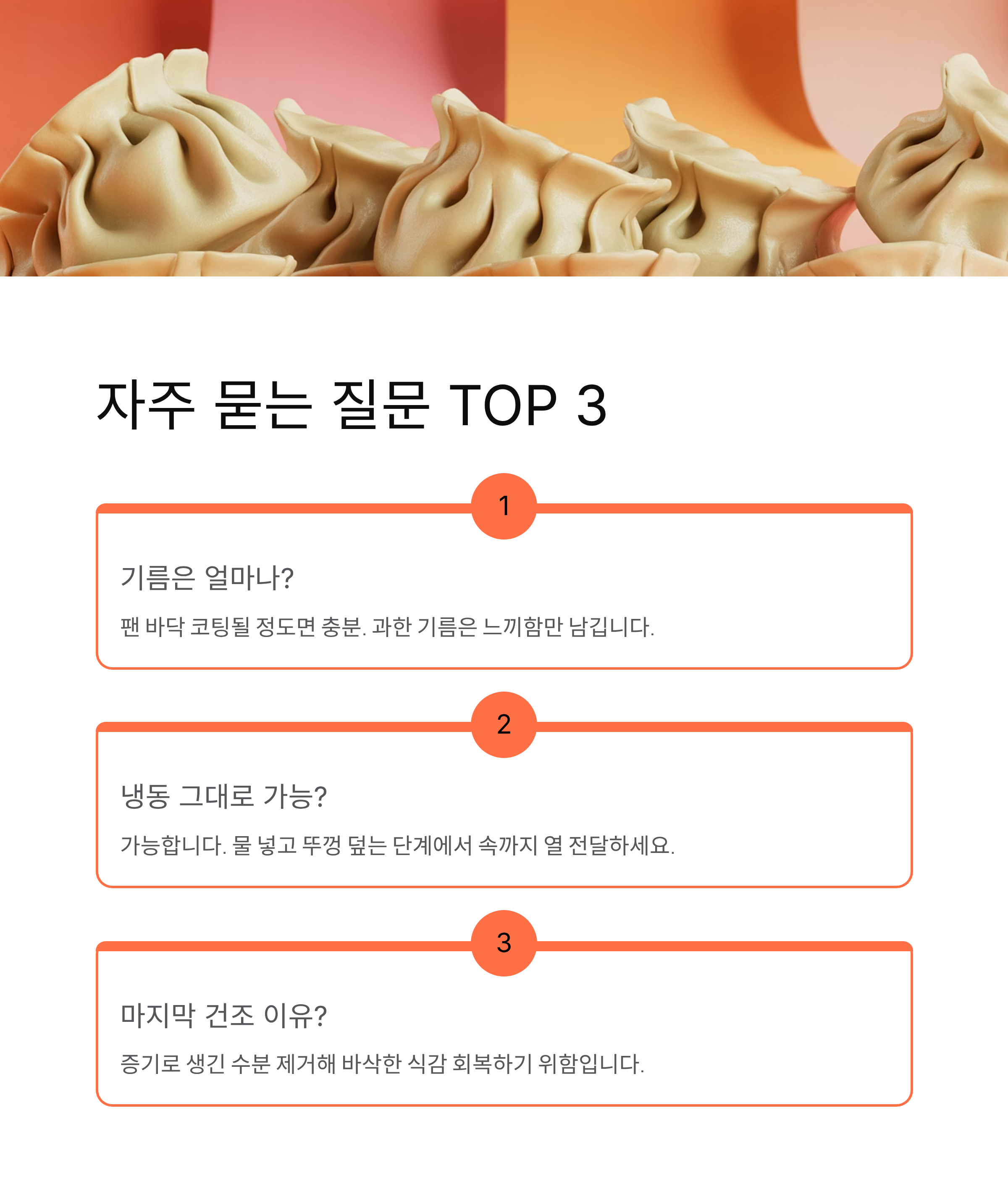 아래 내용은 팬 하나로 군만두를 완성할 때의 흐름을 정리한 예시입니다.