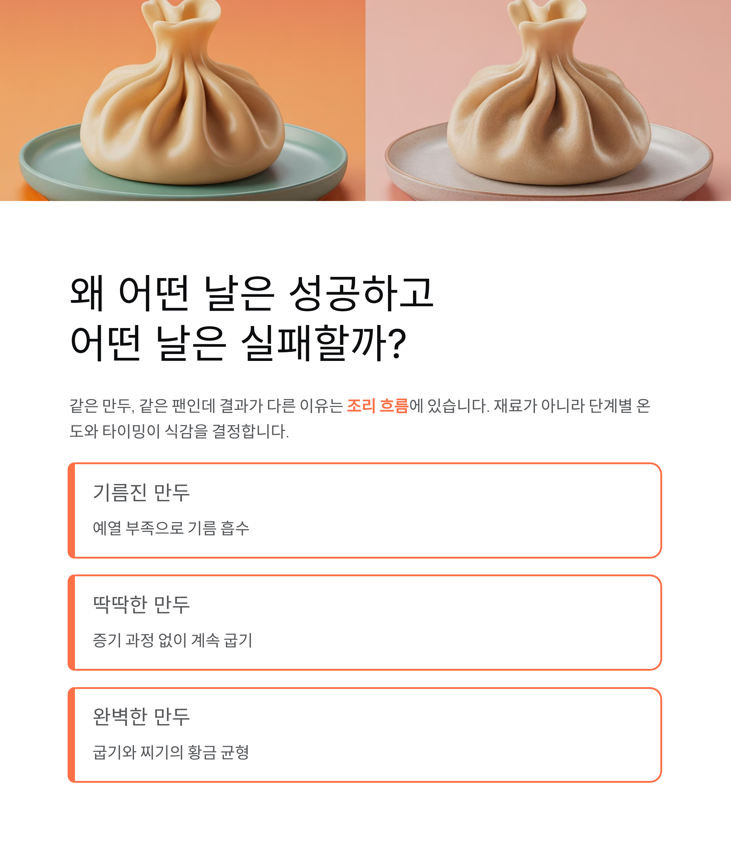 불 앞에서 망설이지 않게 되는 군만두 굽기의 기준