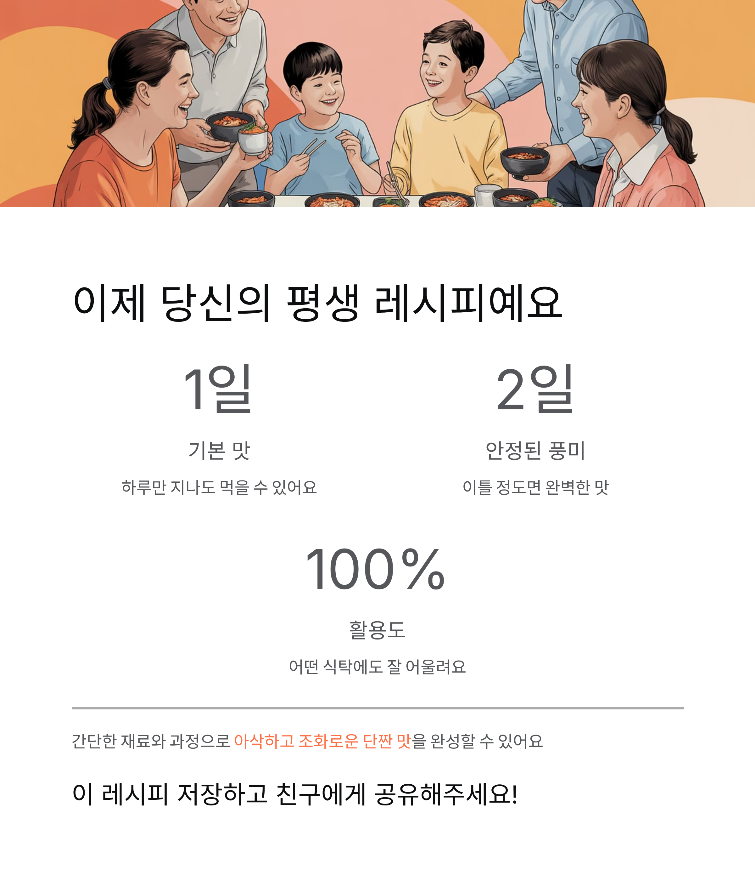 어렵지 않은 재료, 간단한 과정, 꾸준히 먹어도 질리지 않는 매력. 이 세 가지가 모여 평생 써먹는 레시피가 되는 거예요. 한 번 만들어 보면 다음에도 또 찾게 되는 매력이 있습니다.