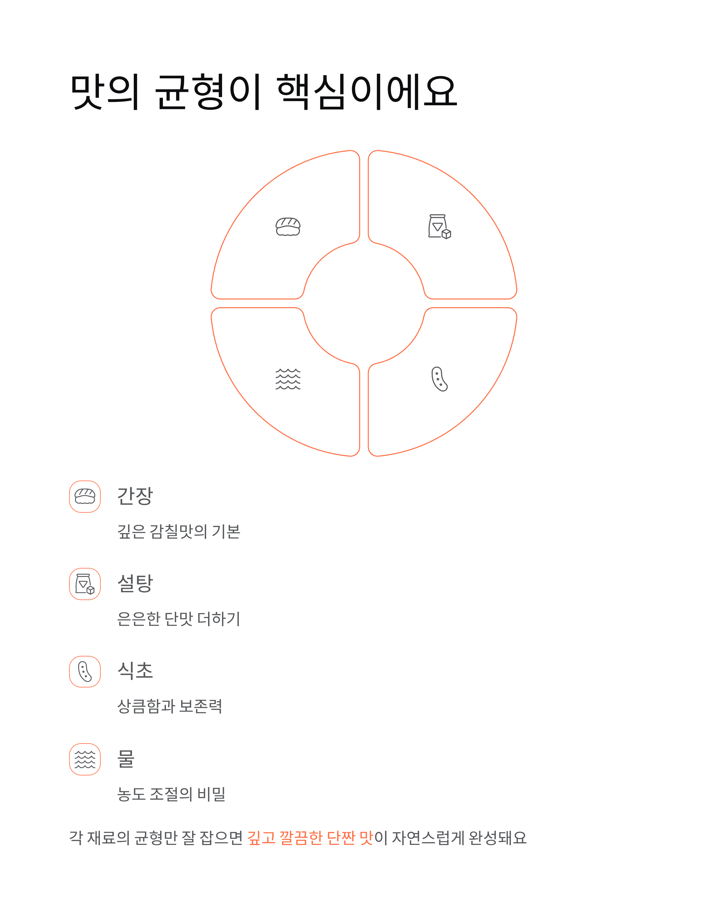 A. 양념 비율을 크게 변경하지 않고 살짝만 조절하는 것이 전체적인 균형 유지에 좋습니다.