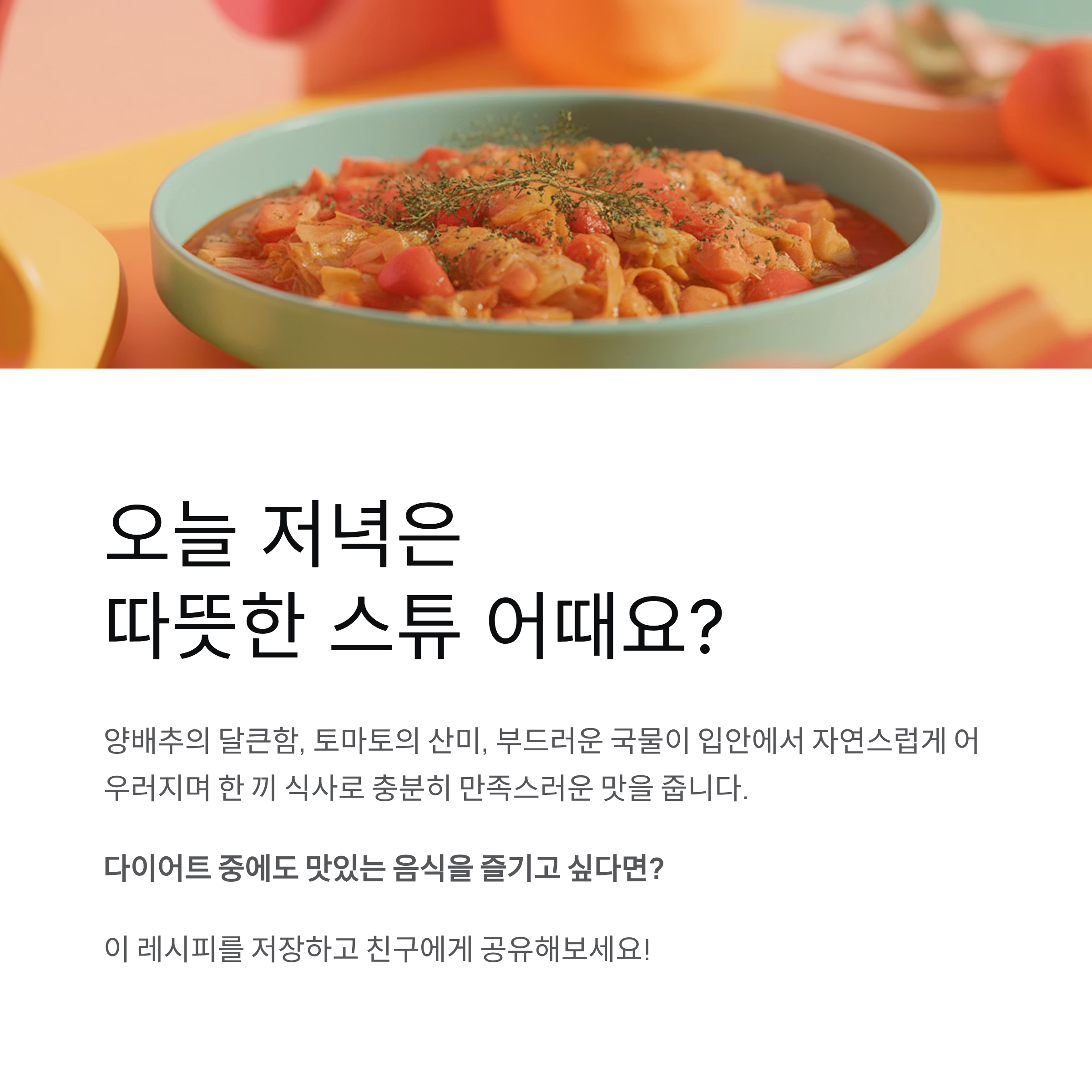 오늘 저녁은 따뜻한 양배추 토마토 스튜 어떠세요?