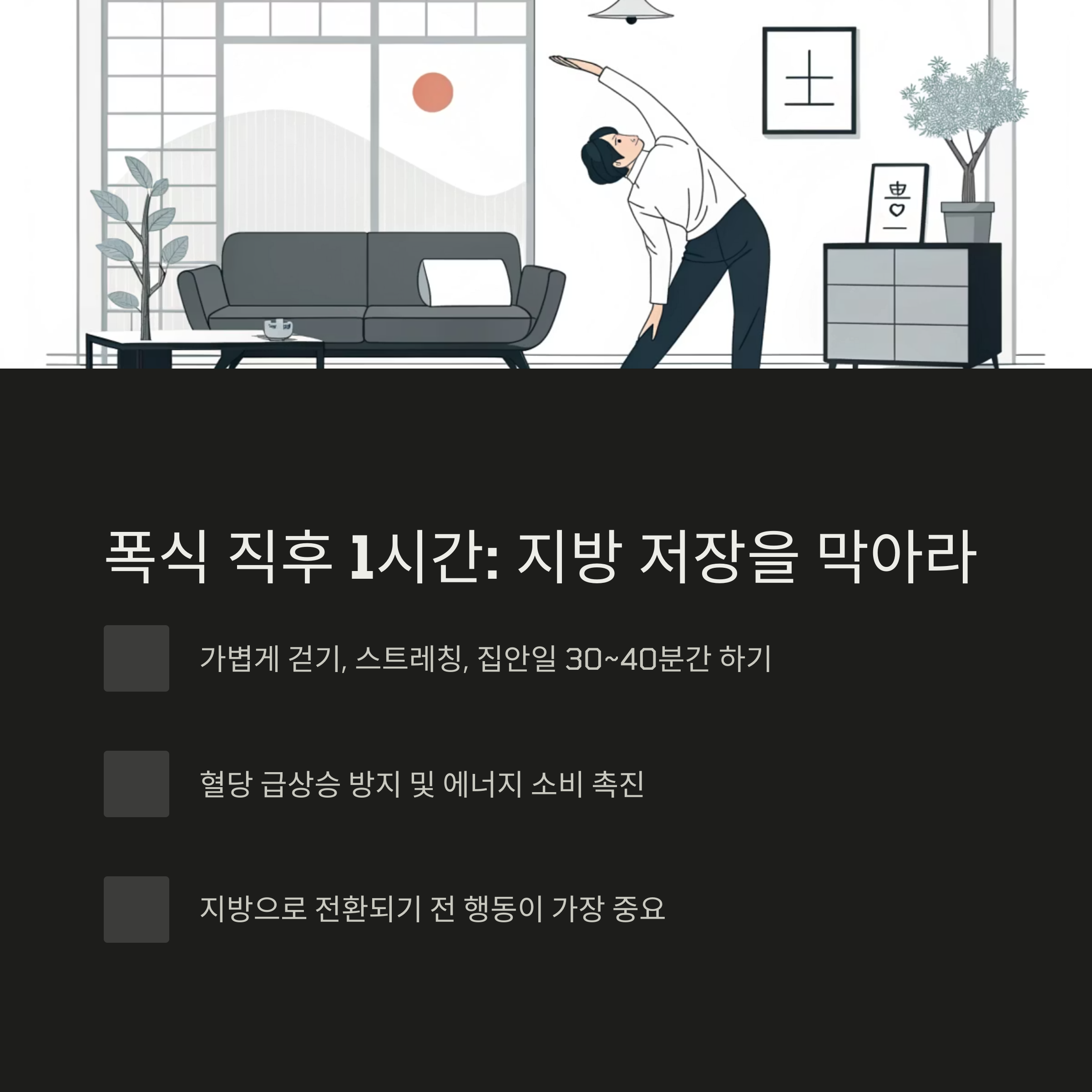 폭식 후 3시간 이내, ‘소화 유도’ 루틴 돌입