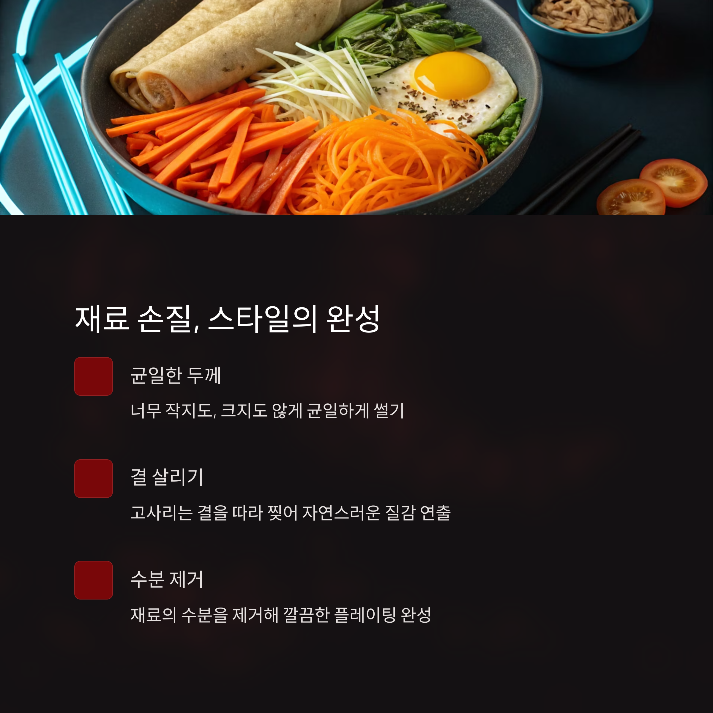 나물을 너무 작게 썰면 흐트러져 보이고,