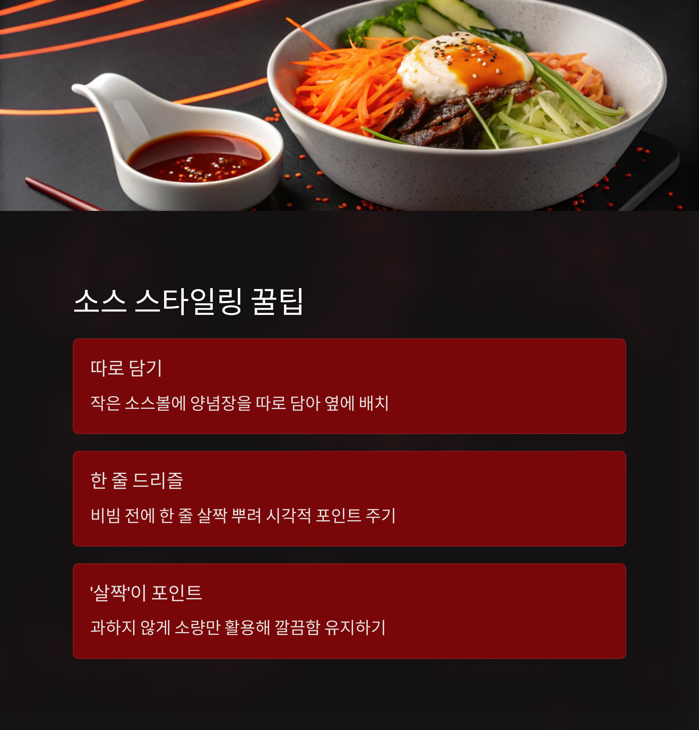 비빔 전에 살짝 한 줄 뿌리는 방식으로 스타일링하면