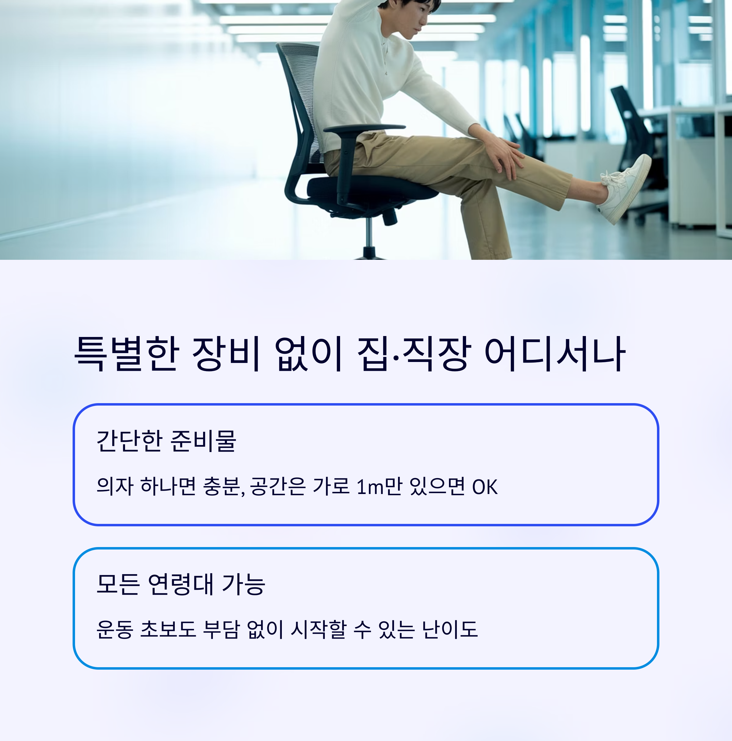 | 하루 1분 효과 | 짧은 시간에도 꾸준하면 유연성과 혈액순환에 도움을 줍니다. |