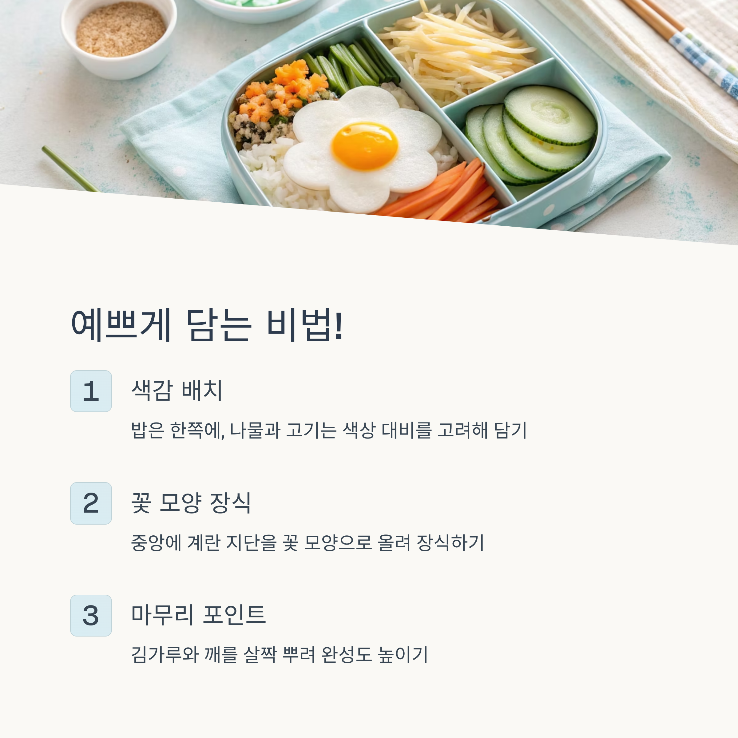 도시락통에 예쁘게 담는 법도 중요합니다