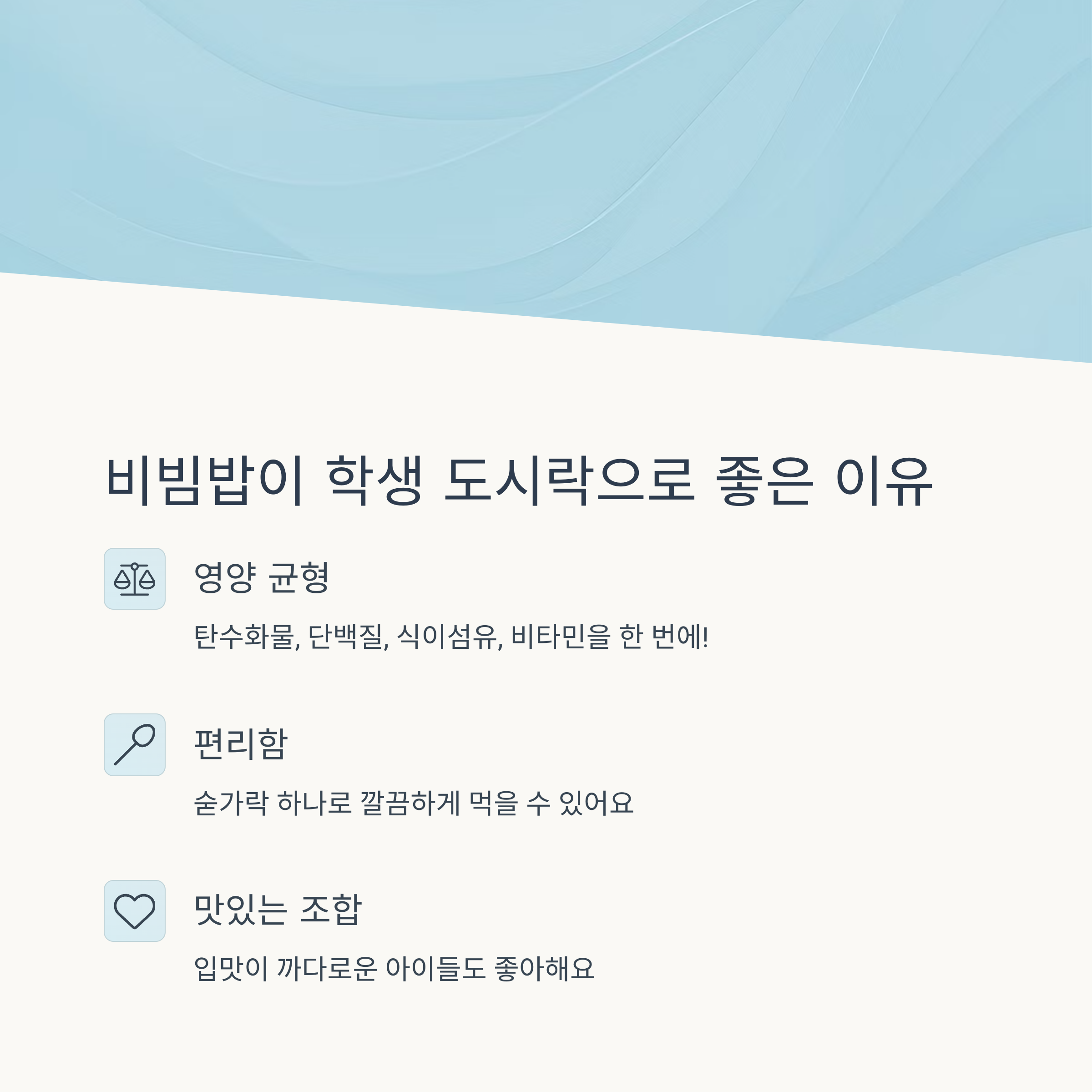 골고루 먹고 든든하게! 성장기 학생을 위한 비빔밥 도시락 구성법