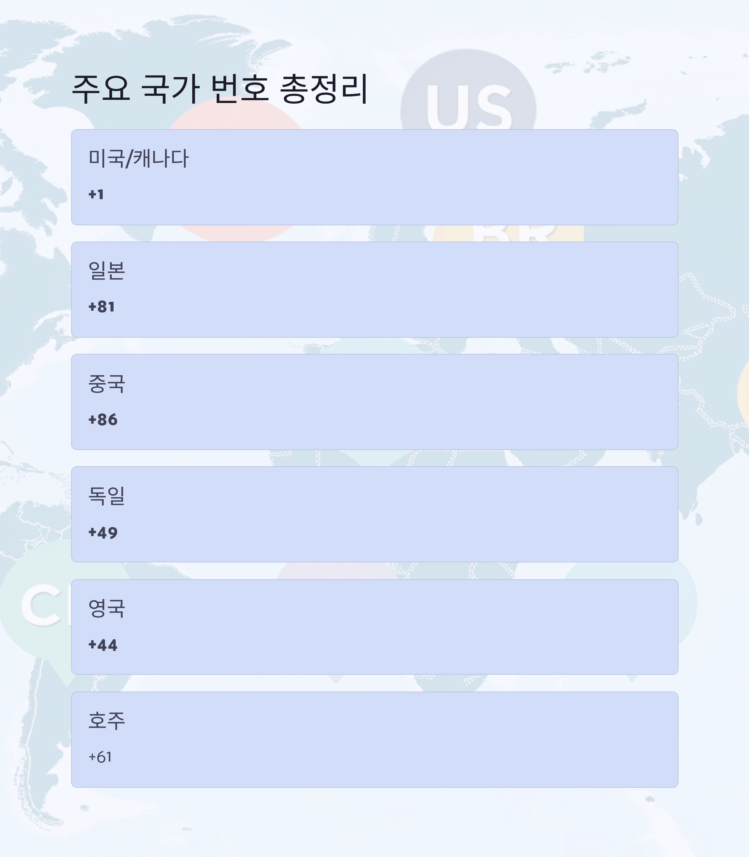 주요 국가의 국가번호 안내