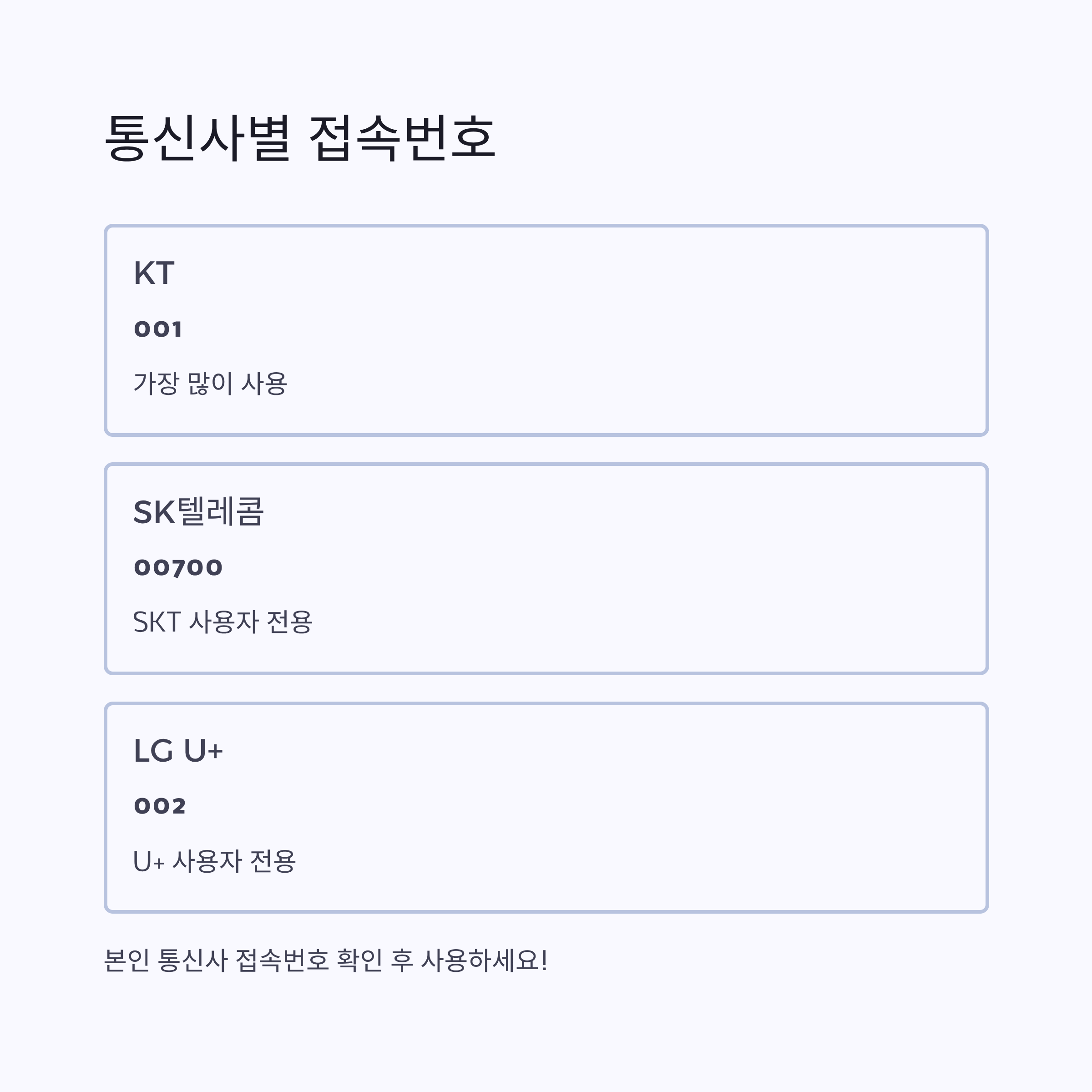 통신사별 국제전화 접속번호 정리