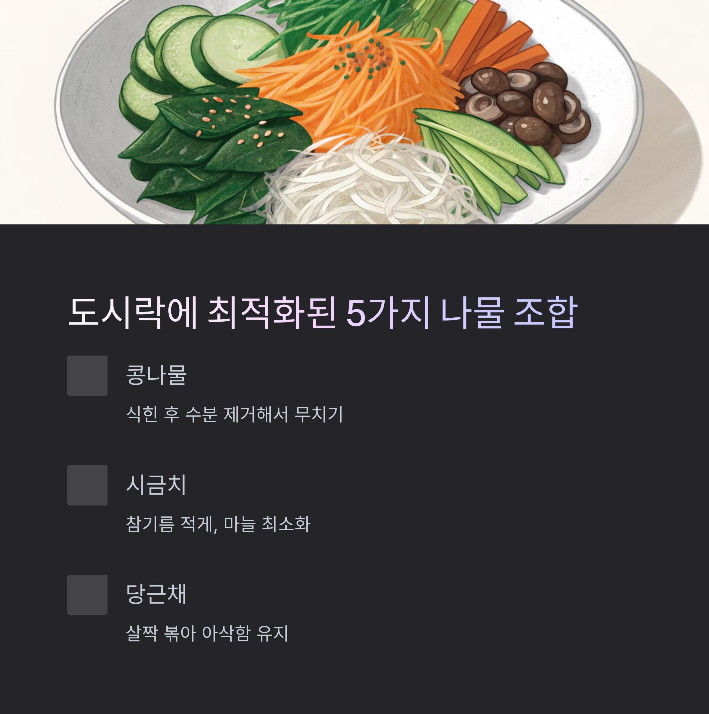 나물 종류 조리 팁 도시락 적합성