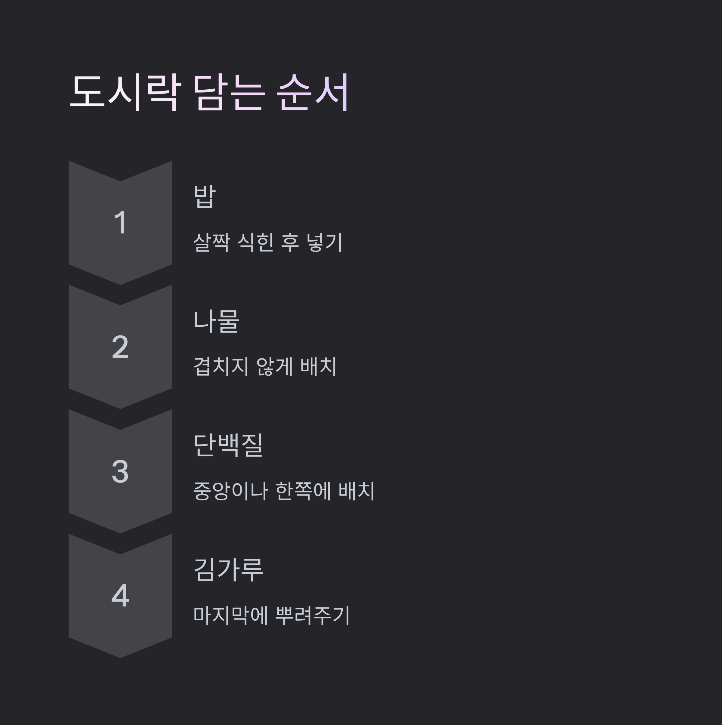 도시락통에 담는 순서도 중요합니다