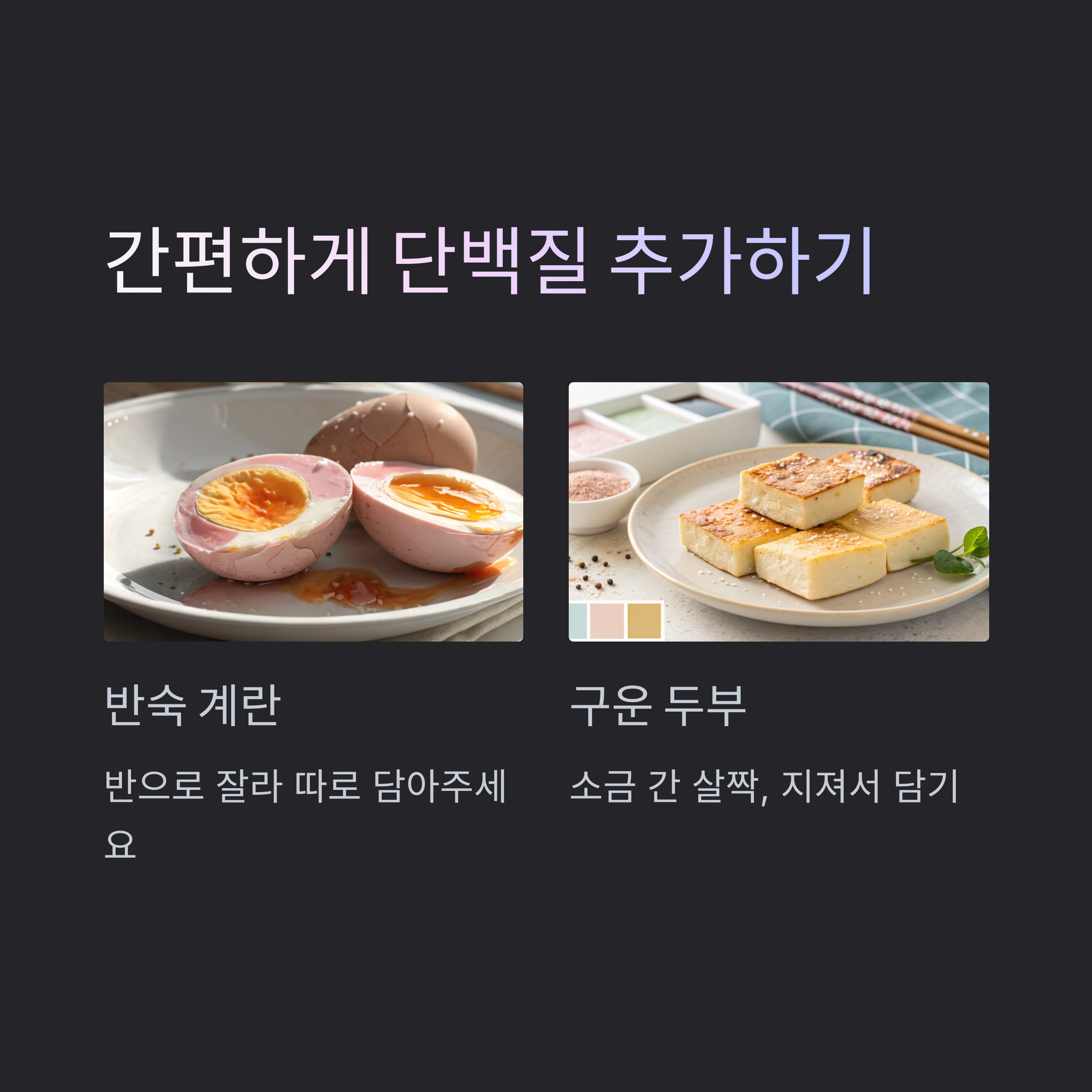 간편한 단백질 추가, 삶은 계란 또는 두부