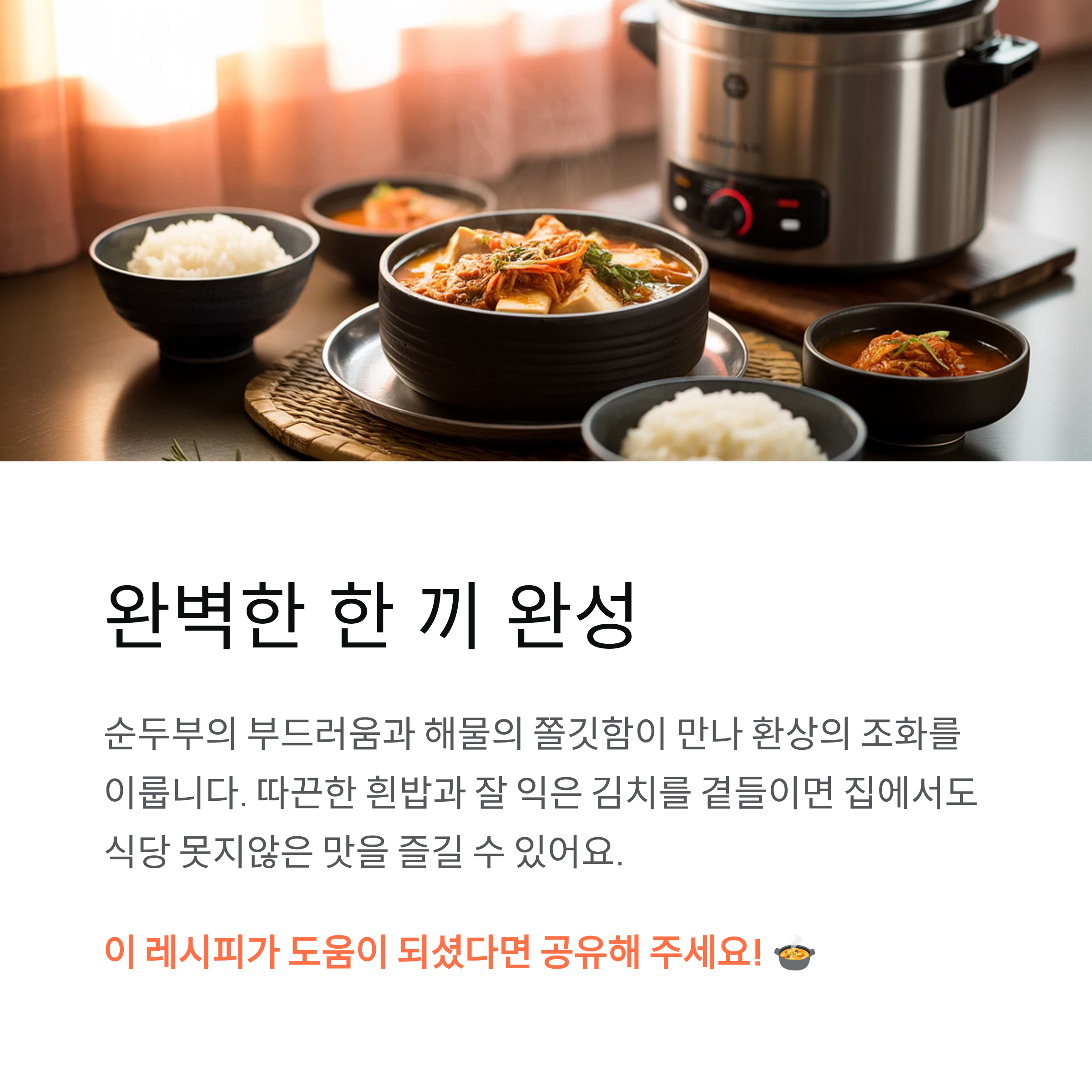 이번 글에서는 해물 순두부찌개를 맛있게 끓이는 법, 양념 비율, 그리고 실패하지 않는 팁까지 모두 정리해 드릴게요.