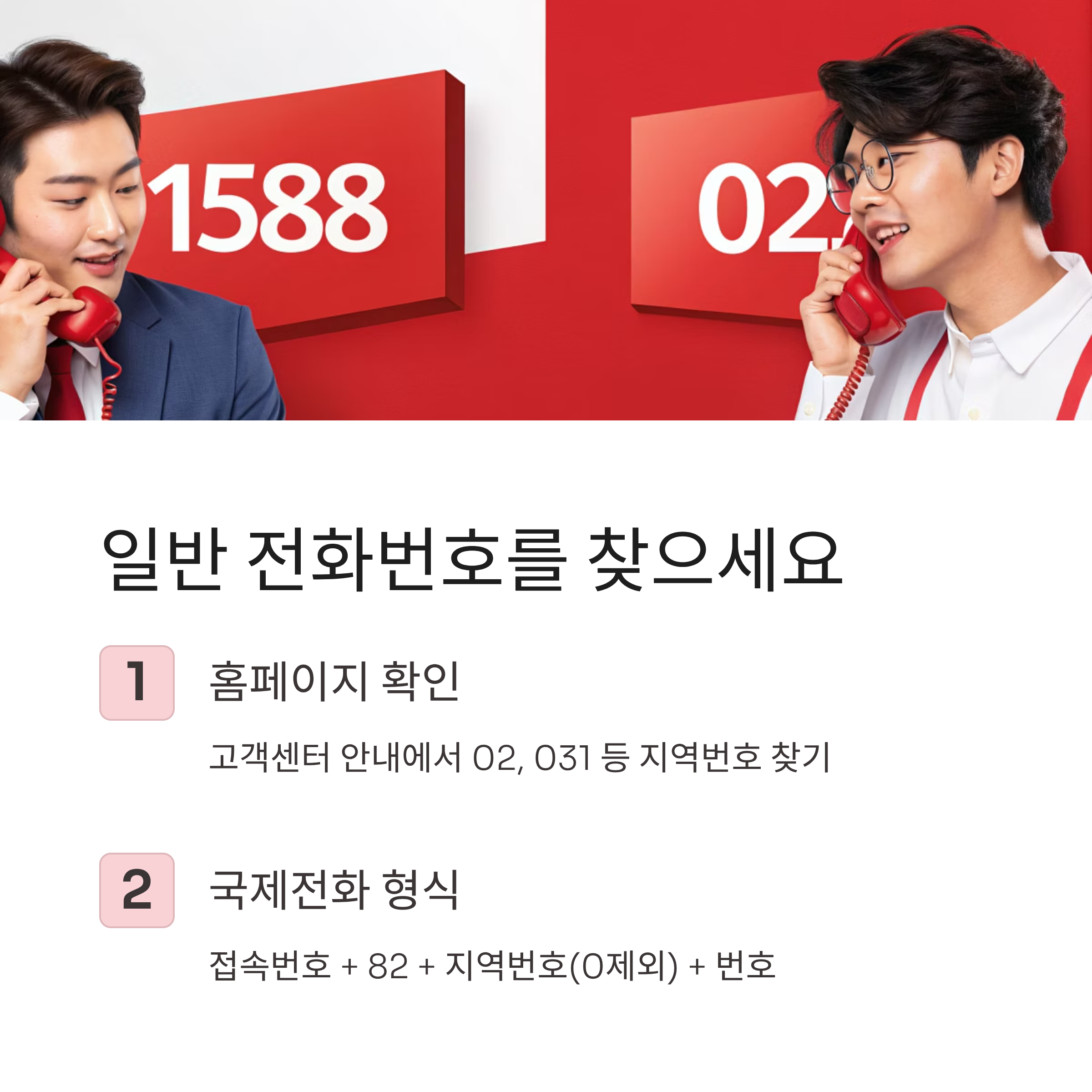 일반 유선전화 번호(02, 031 등 지역번호 포함)를 함께 운영합니다.