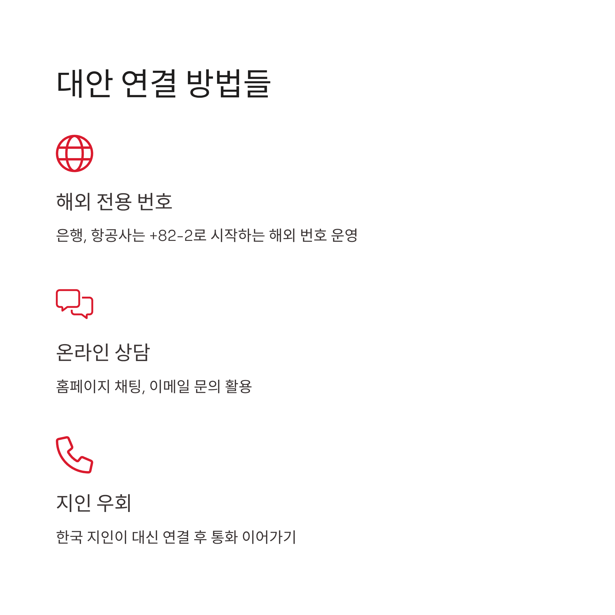 ‘해외 전용 전화번호’를 따로 운영하는 경우가 많습니다.