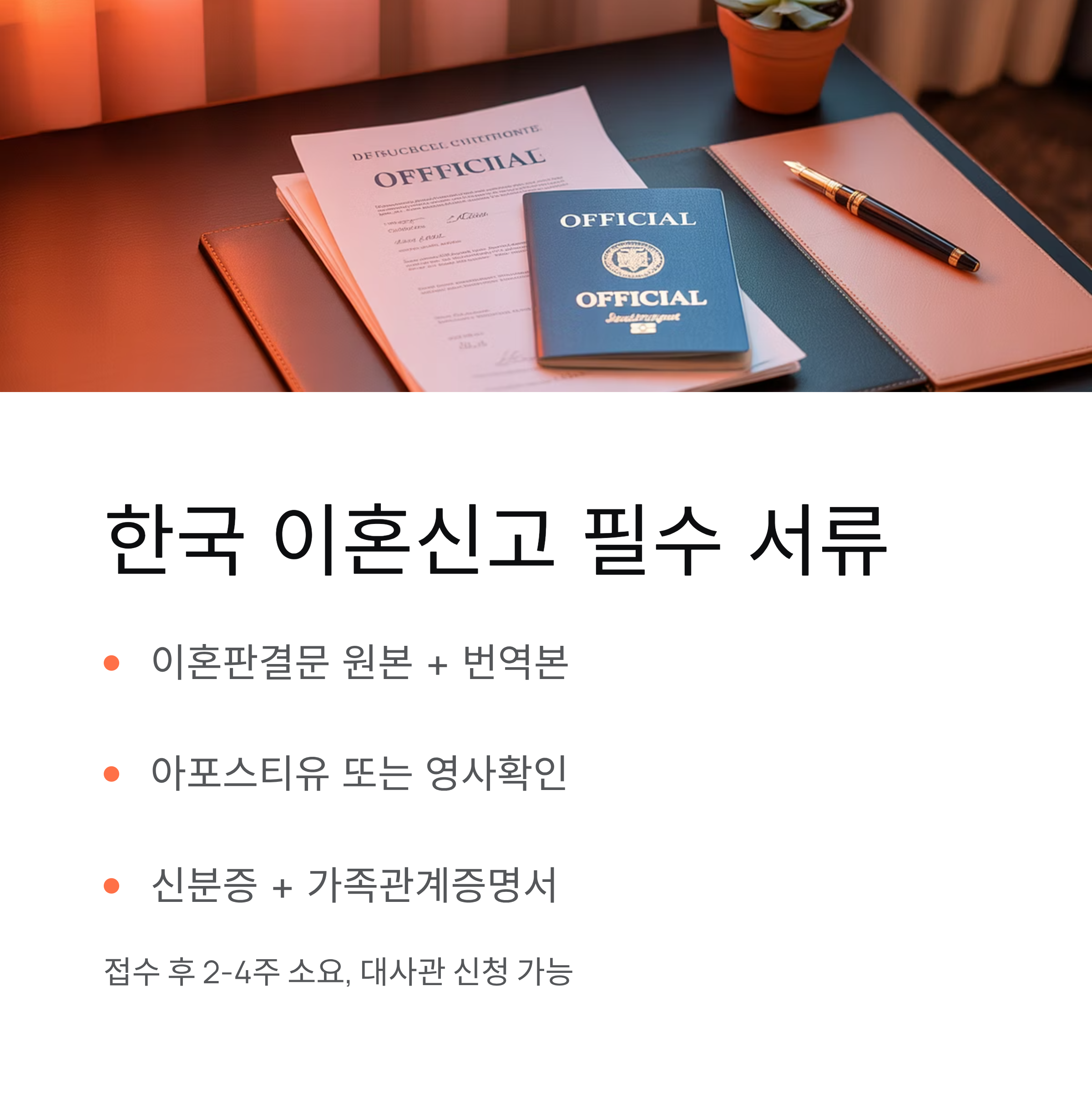 특히 아포스티유, 번역공증 등 절차 누락으로 거절되는 사례가 많으니 주의하세요.