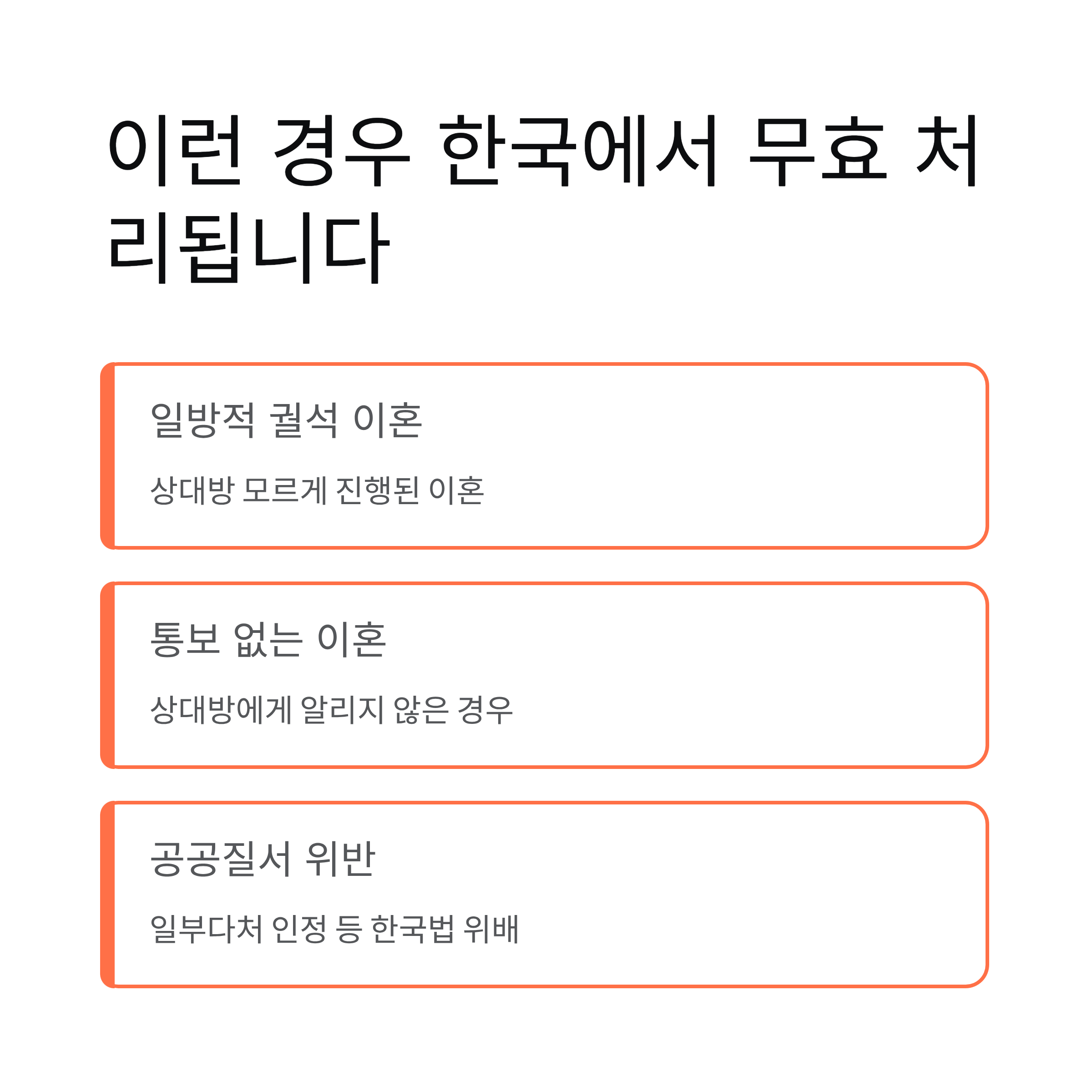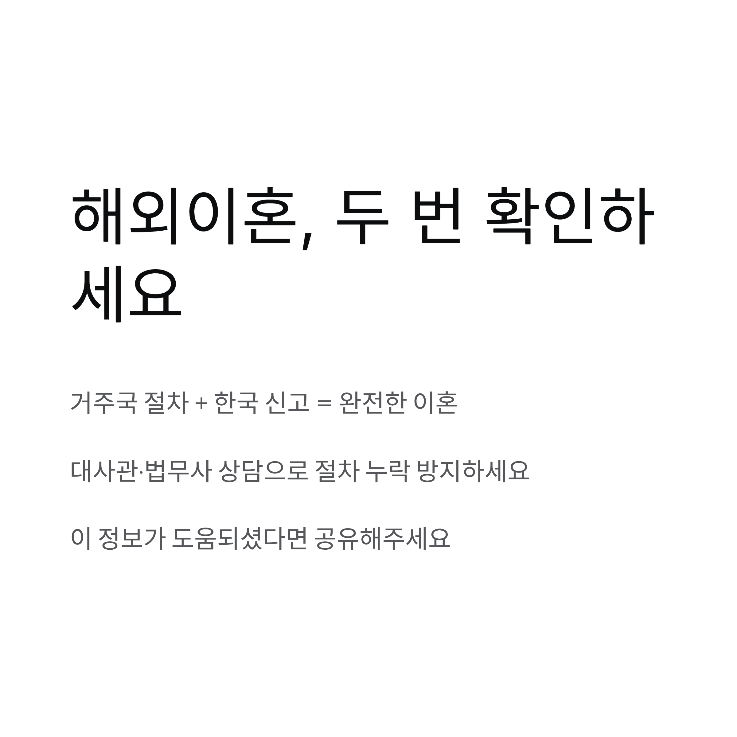 제대로 이해하지 않으면 이혼이 무효 처리되거나 한국에 반영되지 않을 수 있습니다.