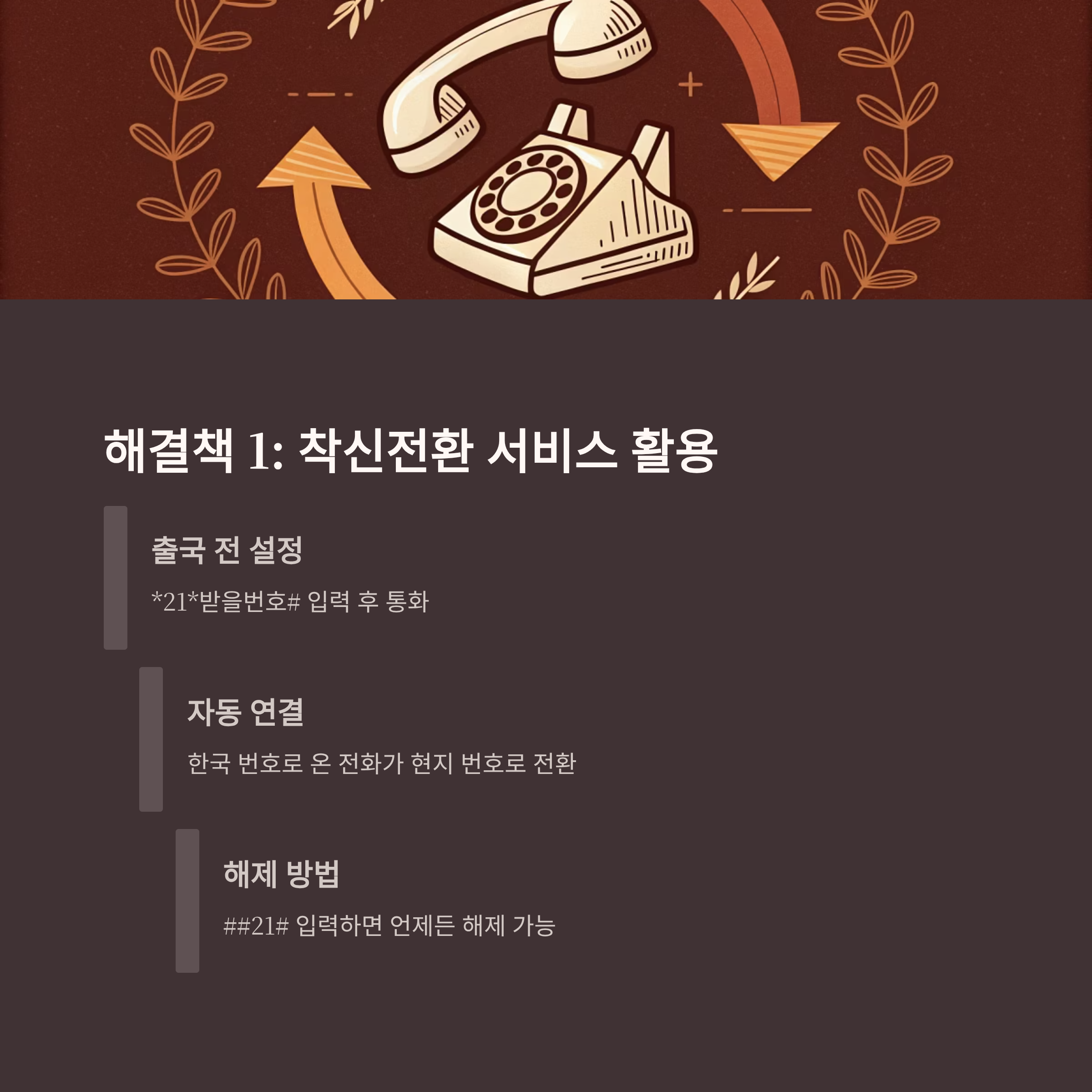- 착신전환: 출국 전 설정하면 현지 번호로 전화 수신 가능
