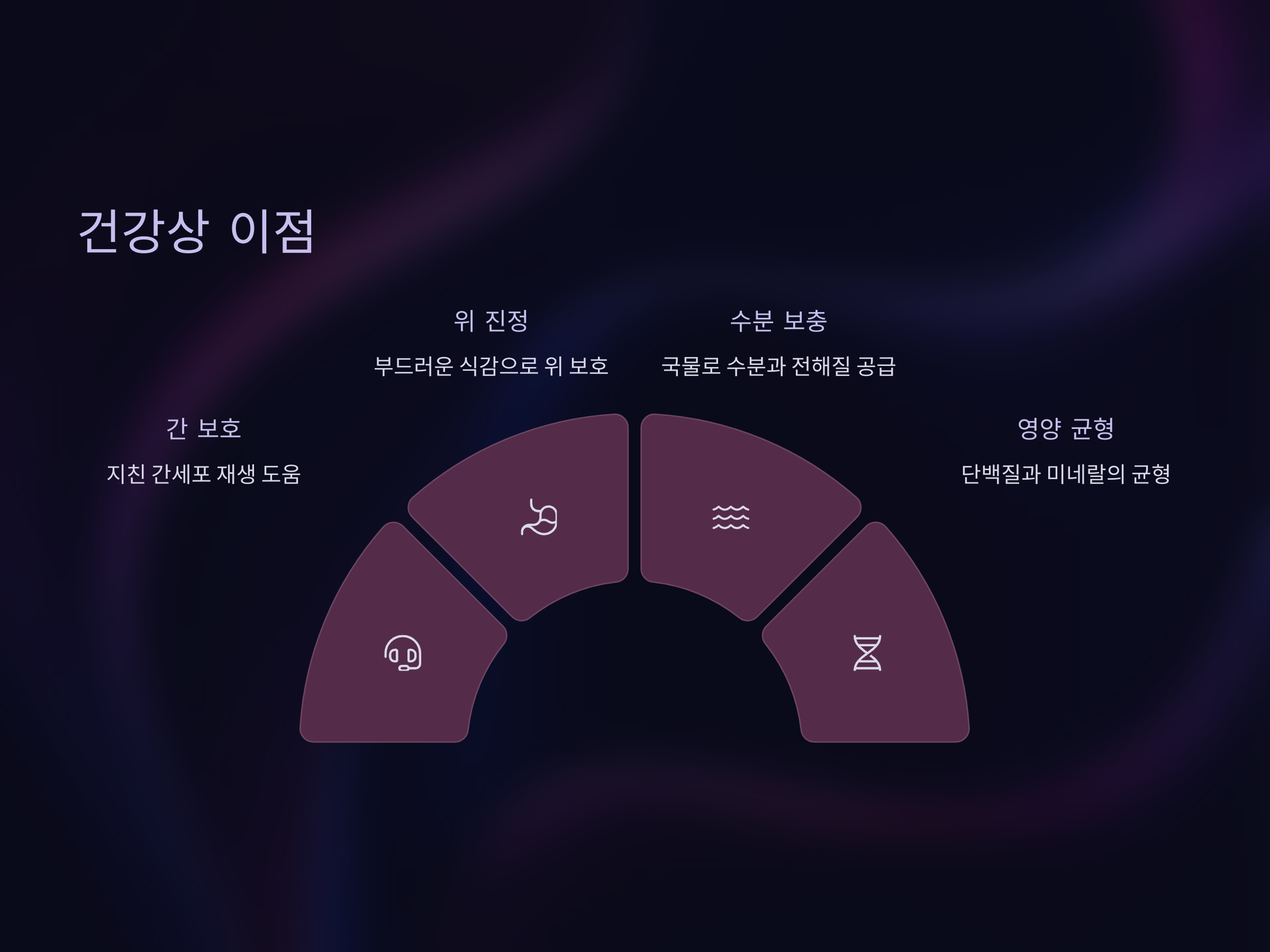 간을 보호하고, 위를 진정시키며, 수분까지 보충해주는 해장 맞춤형 레시피입니다.
