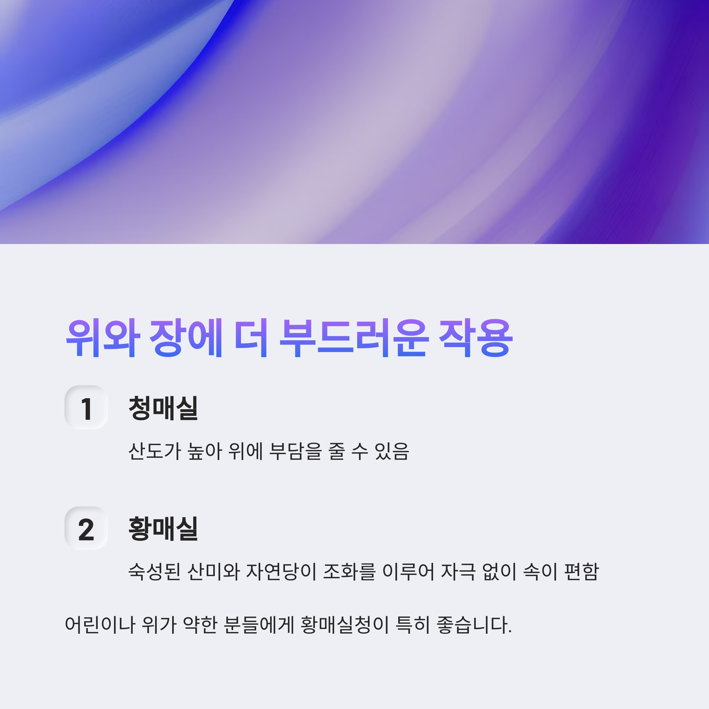 위와 장에 부드러운 작용, 산미가 덜하다