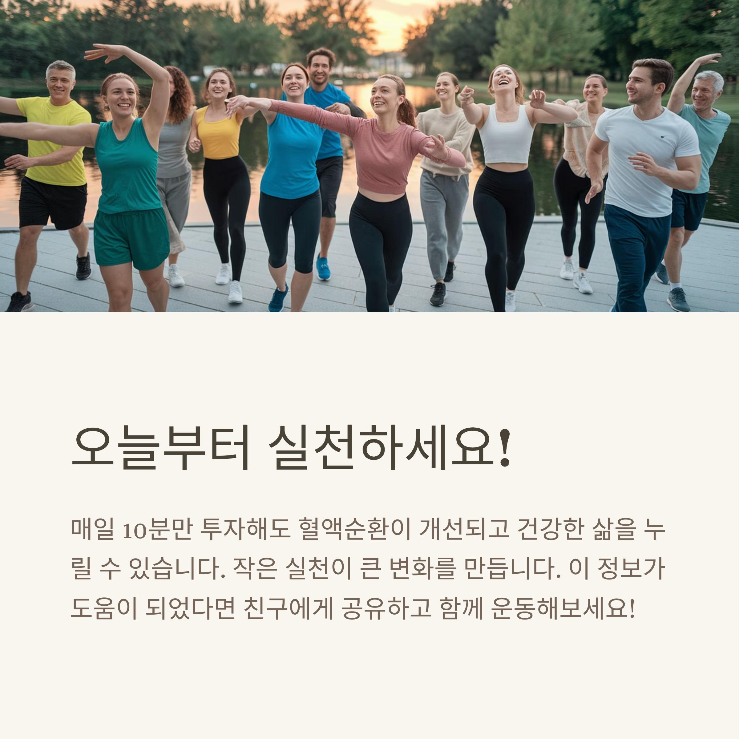 혈액순환은 신체 건강의 기초입니다. 따뜻한 차 한 잔이나 보조제도 좋지만, 운동만큼 확실한 방법은 없습니다. 오늘 소개한 걷기, 스트레칭, 종아리 운동을 생활 속에 자연스럽게 포함시켜 보세요. 작지만 꾸준한 실천이 건강한 순환과 활력 있는 하루로 이어집니다. 지금 이 순간부터 몸을 움직여볼까요?