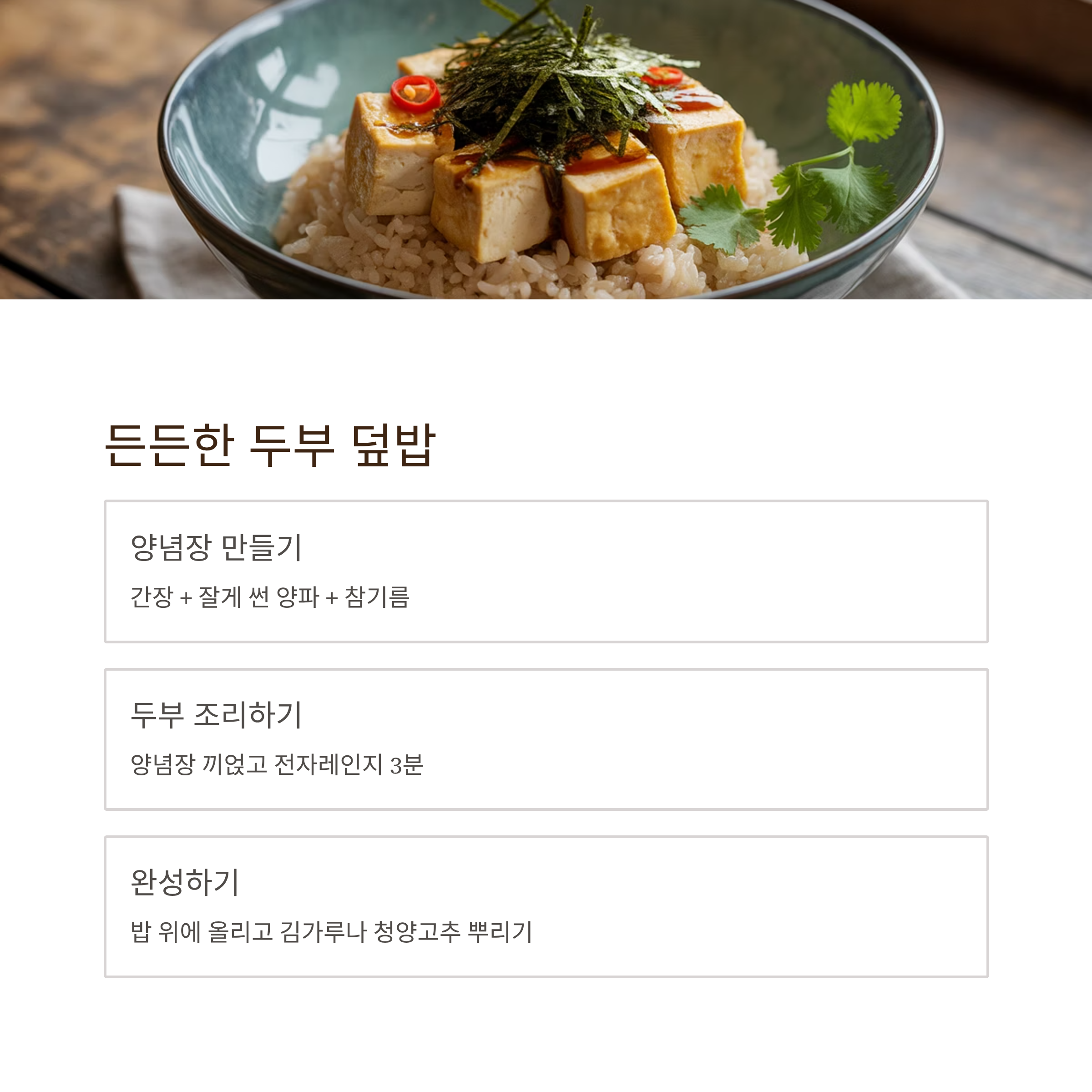 두부조림, 달걀찜, 치즈구이, 덮밥까지 다양한 레시피를 활용하면 매일 새로운 식탁을 차릴 수 있습니다.