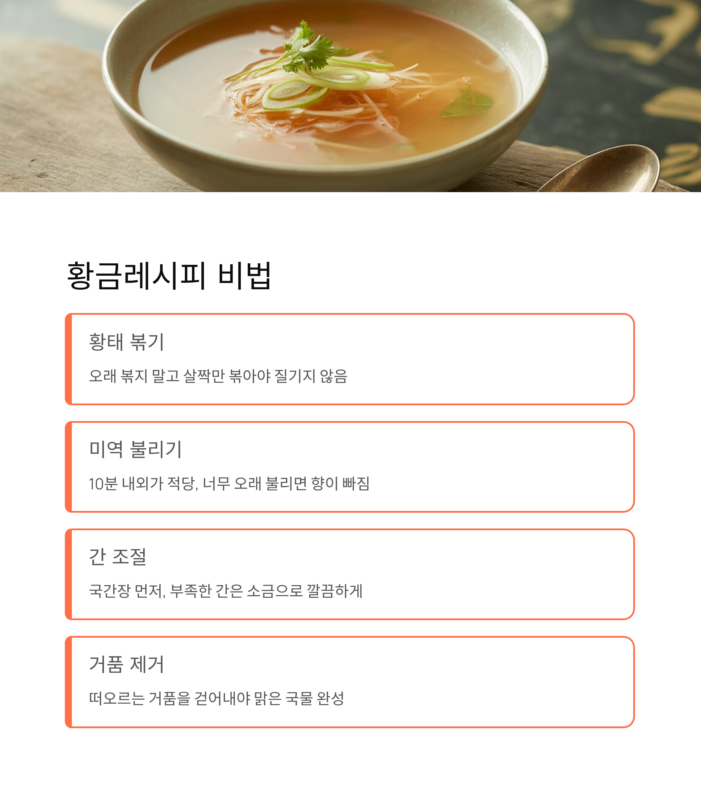 오늘은 황태 미역국 황금레시피를 소개하면서 깊고 시원한 국물을 내는 비법까지 정리해드리겠습니다.