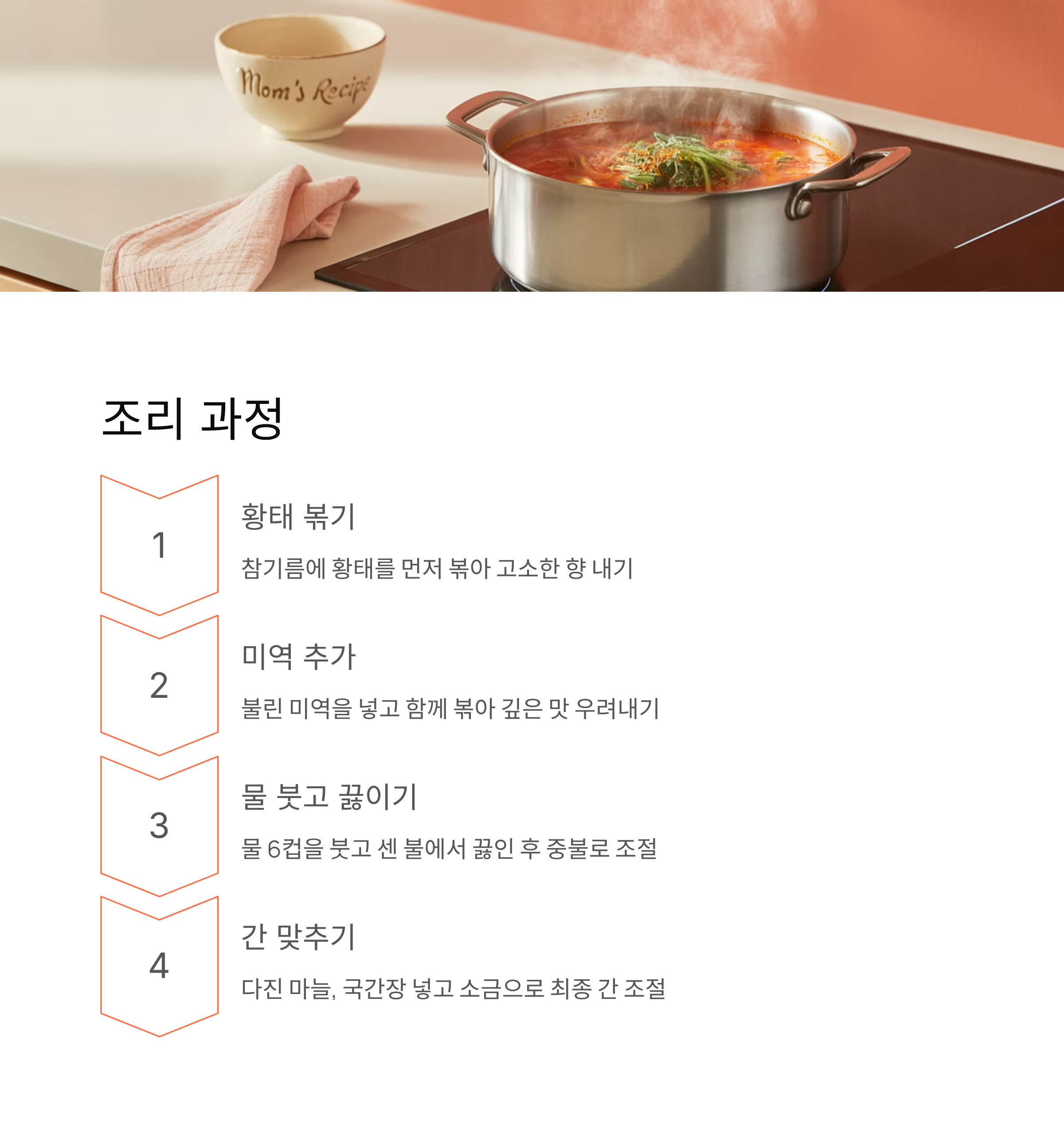 특히 황태 미역국은 재료가 단순하면서도 조리 과정이 간단해 바쁜 일상에서 부담 없이 끓일 수 있는 초간단 레시피입니다.