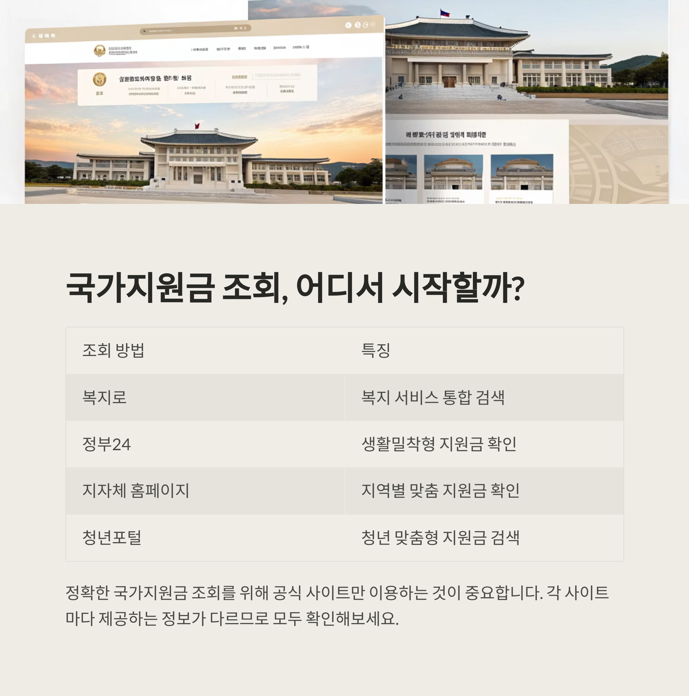 "정확한 국가지원금 조회를 위해 공식 사이트만 이용하는 것이 중요합니다."