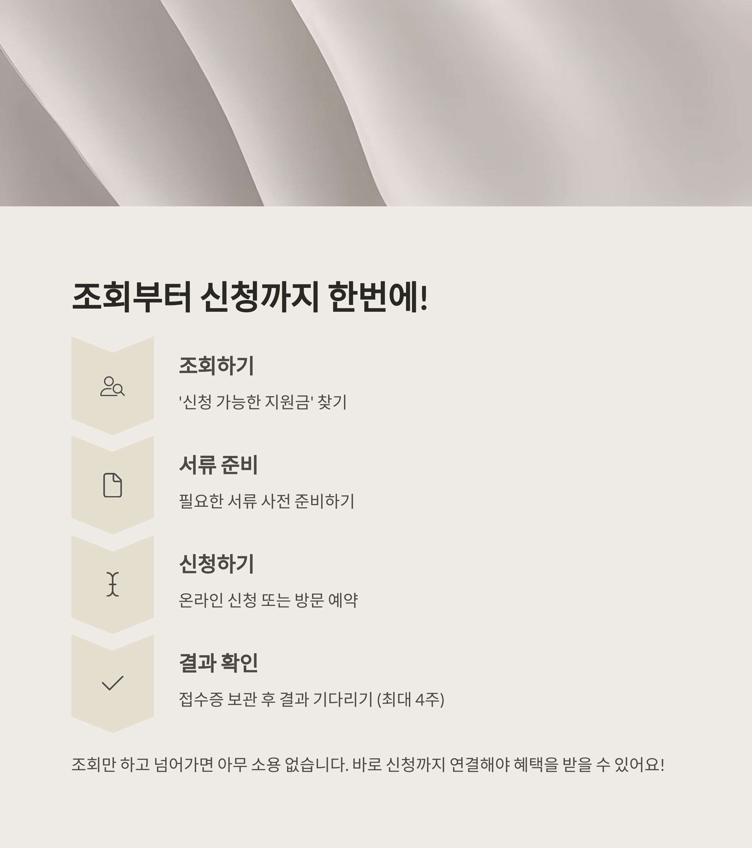 "조회만 하고 넘어가면 아무 소용 없습니다. 바로 신청까지 연결해야 혜택을 받을 수 있어요!"