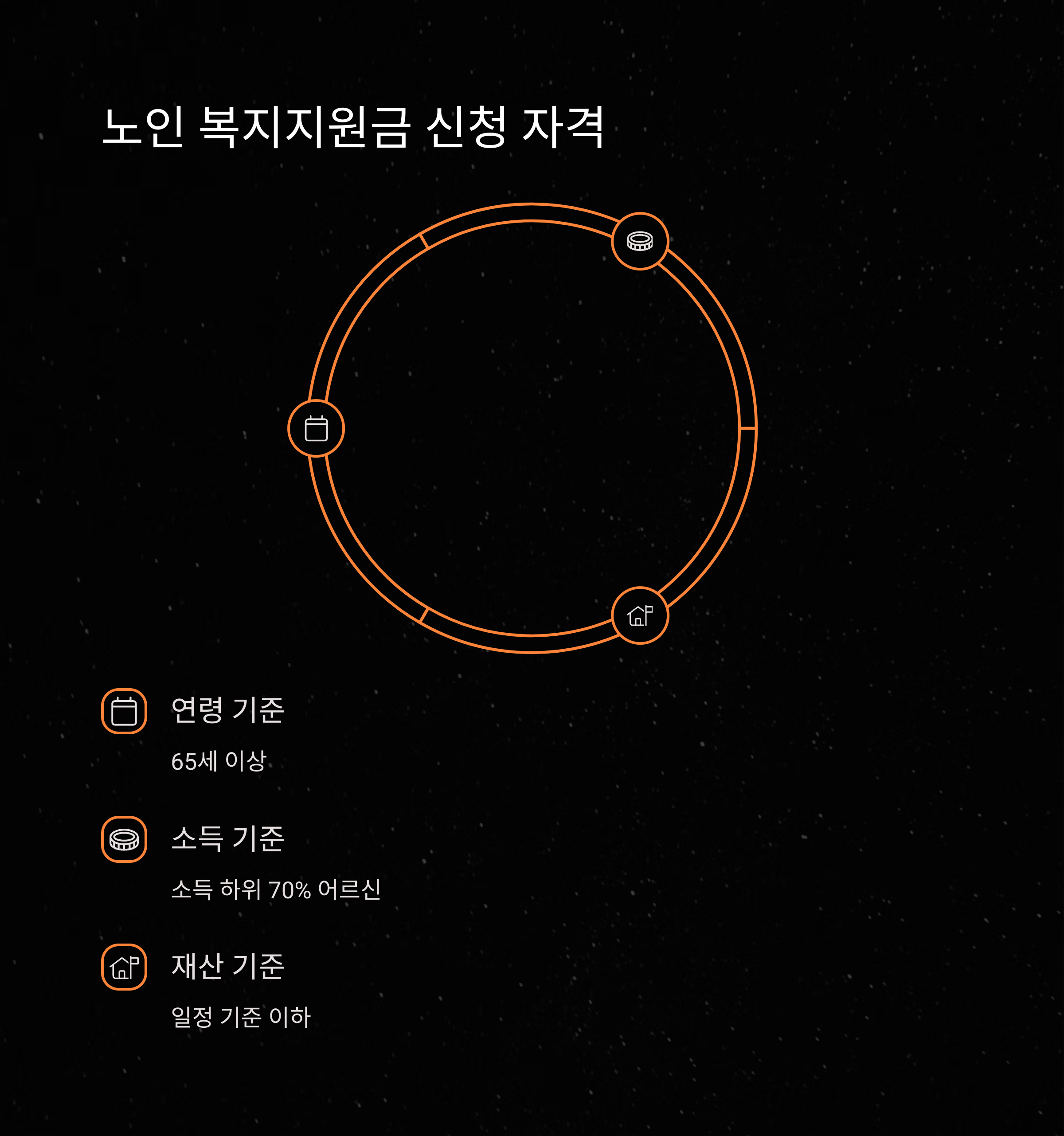 | 노인 | 65세 이상 | 기초연금, 장기요양급여 |