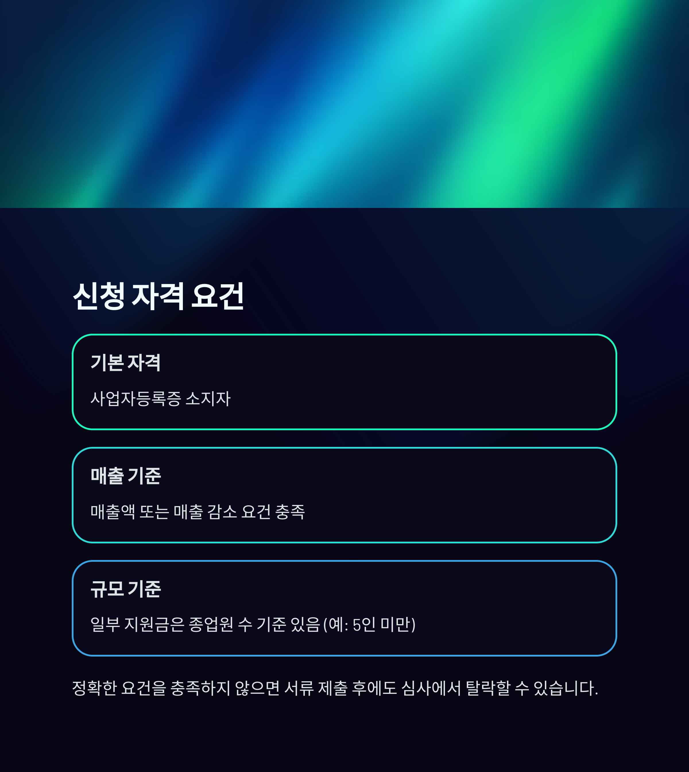 - 일부 지원금은 종업원 수 기준 있음 (예: 5인 미만)