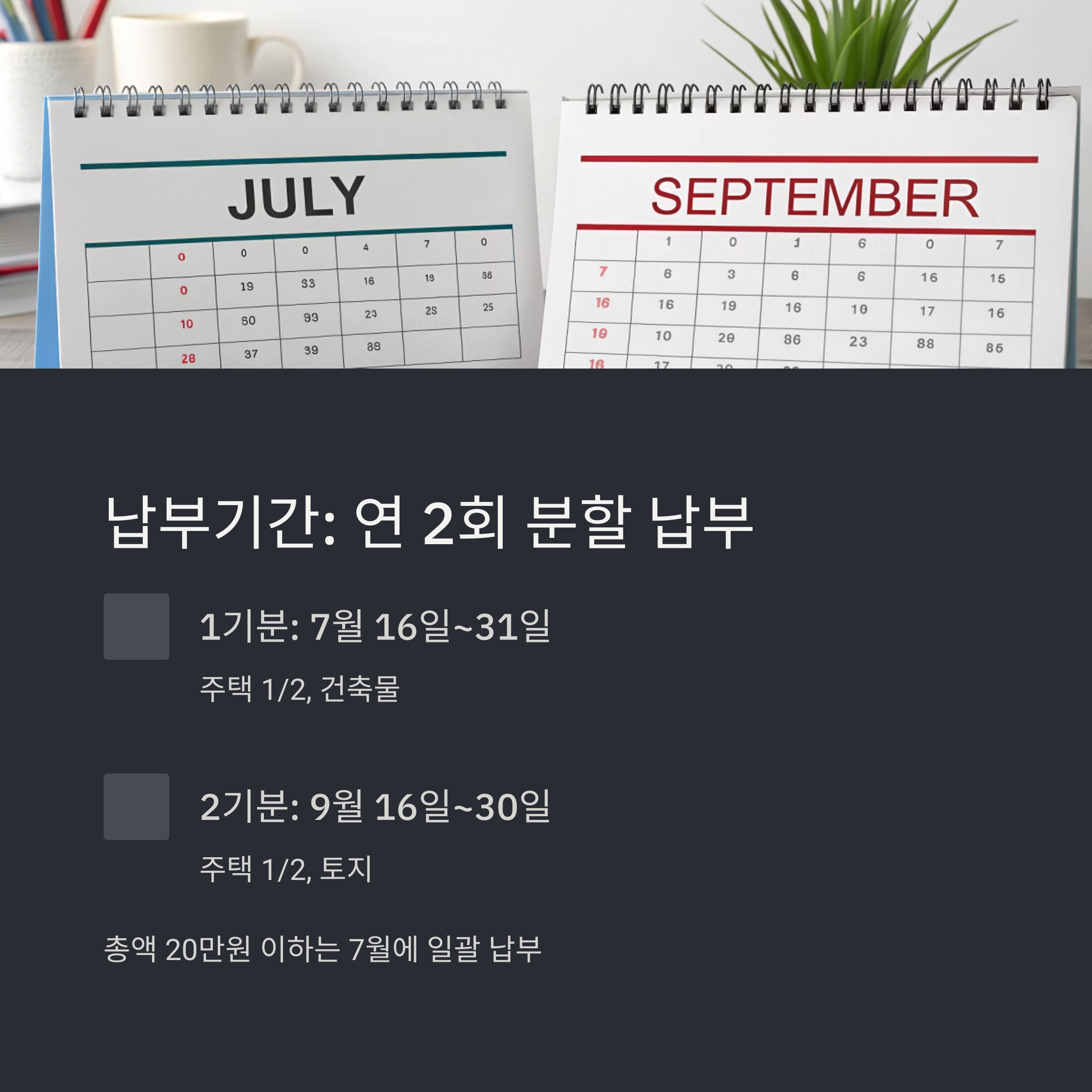 납부기간은 7월과 9월, 2회 분할 납부 원칙