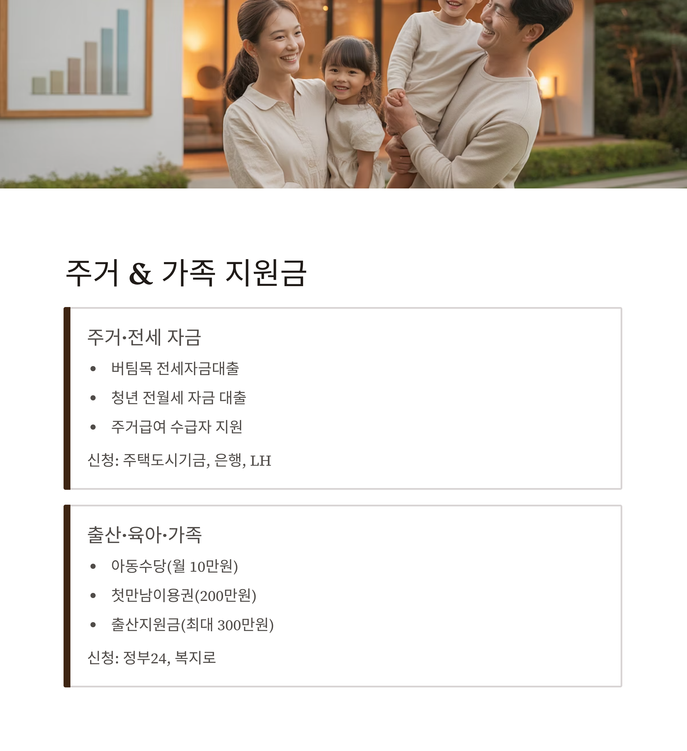 - 출산지원금 (지자체별 최대 300만 원 이상)