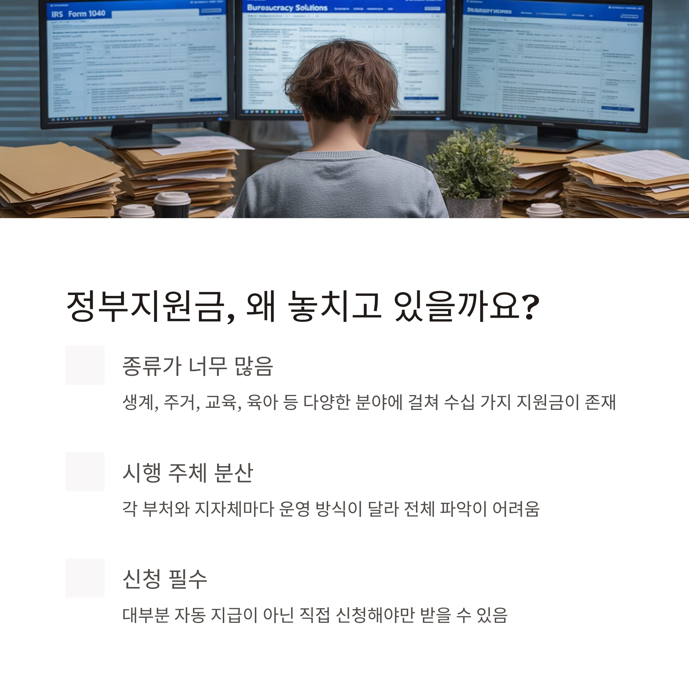 어떤 지원금이 있는지 모르는 경우가 대부분입니다.