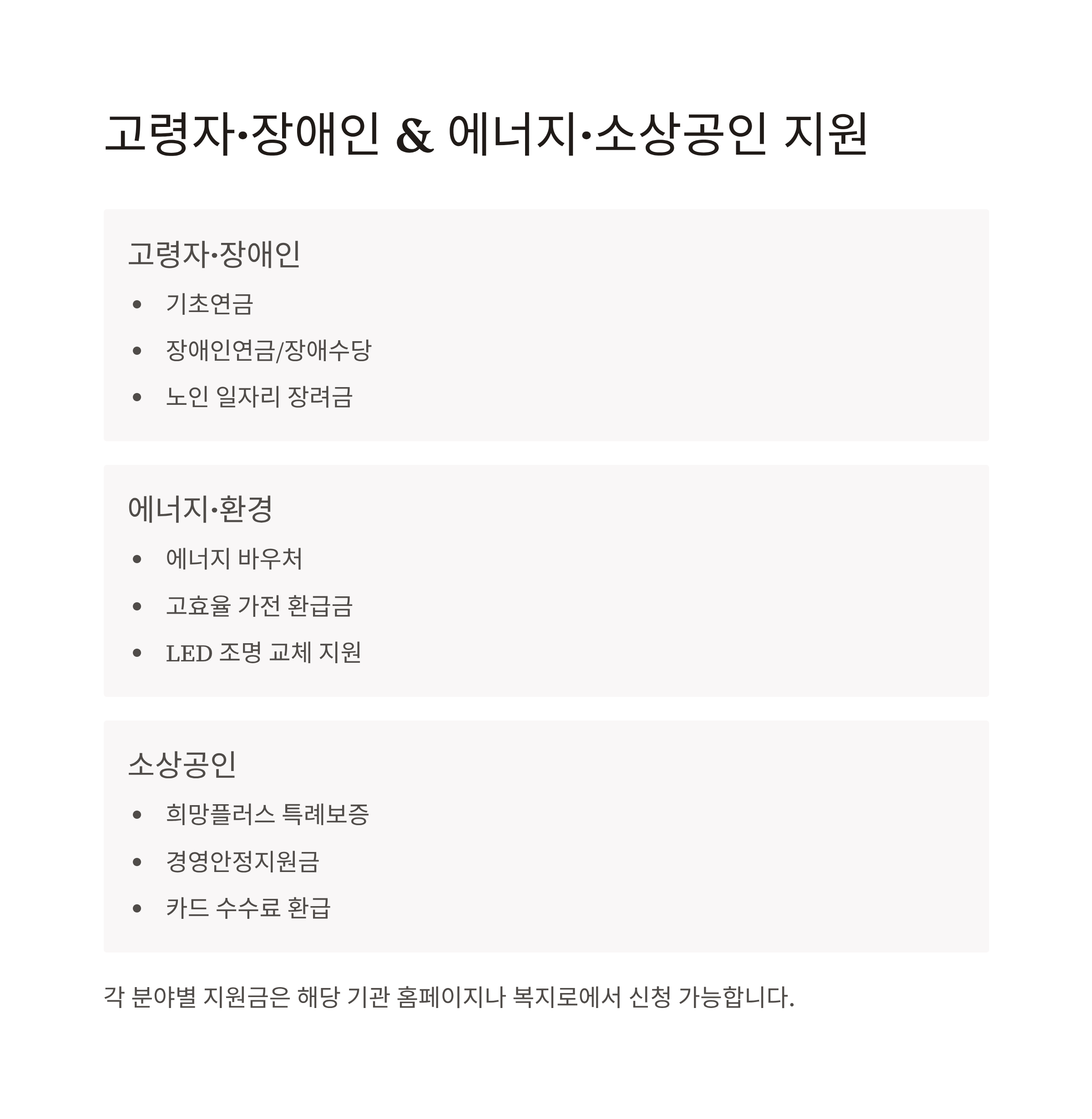 - 에너지 바우처 (하절기·동절기 에너지 요금 보조)