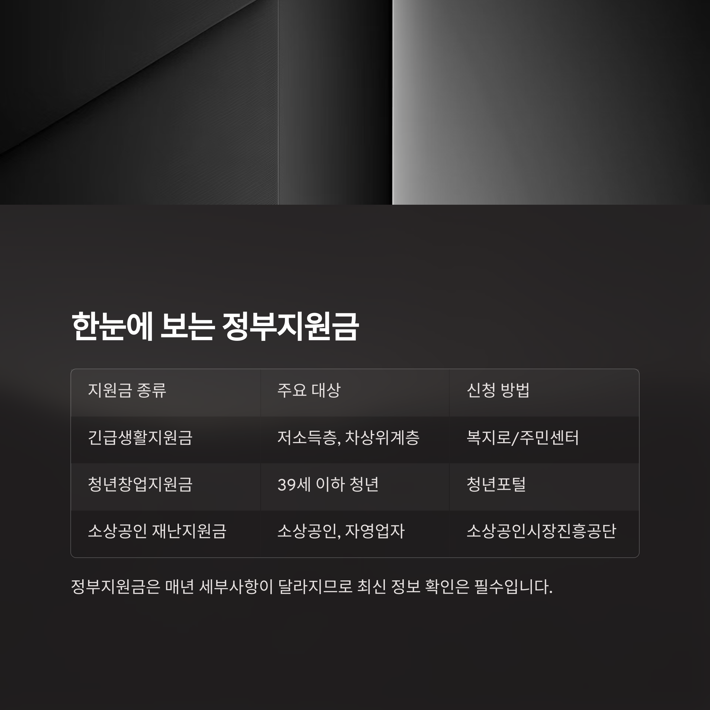2025년 정부지원금 종류 한눈에 정리 (표 제공)