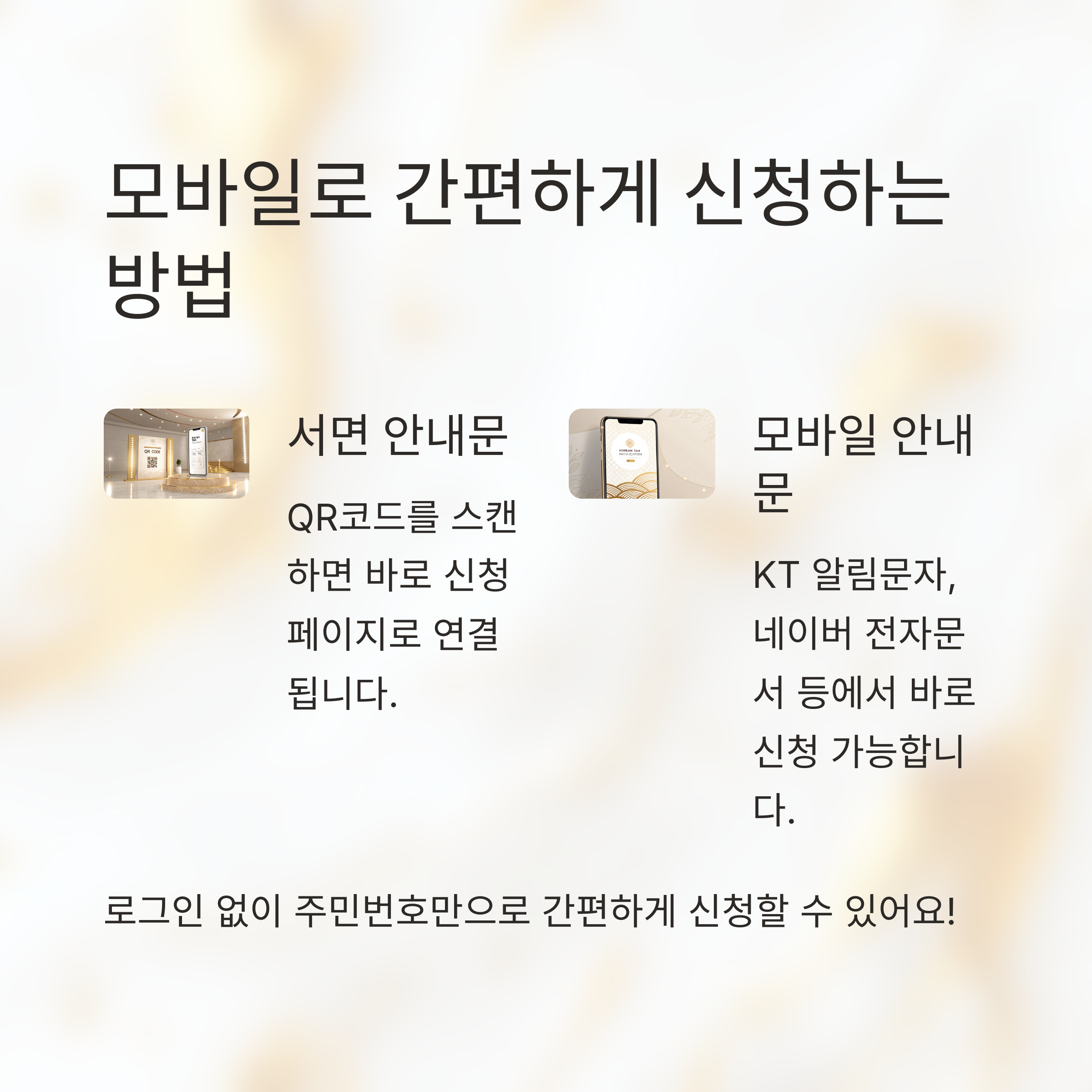 로그인 없이 주민번호만 입력하면 바로 신청할 수 있습니다.